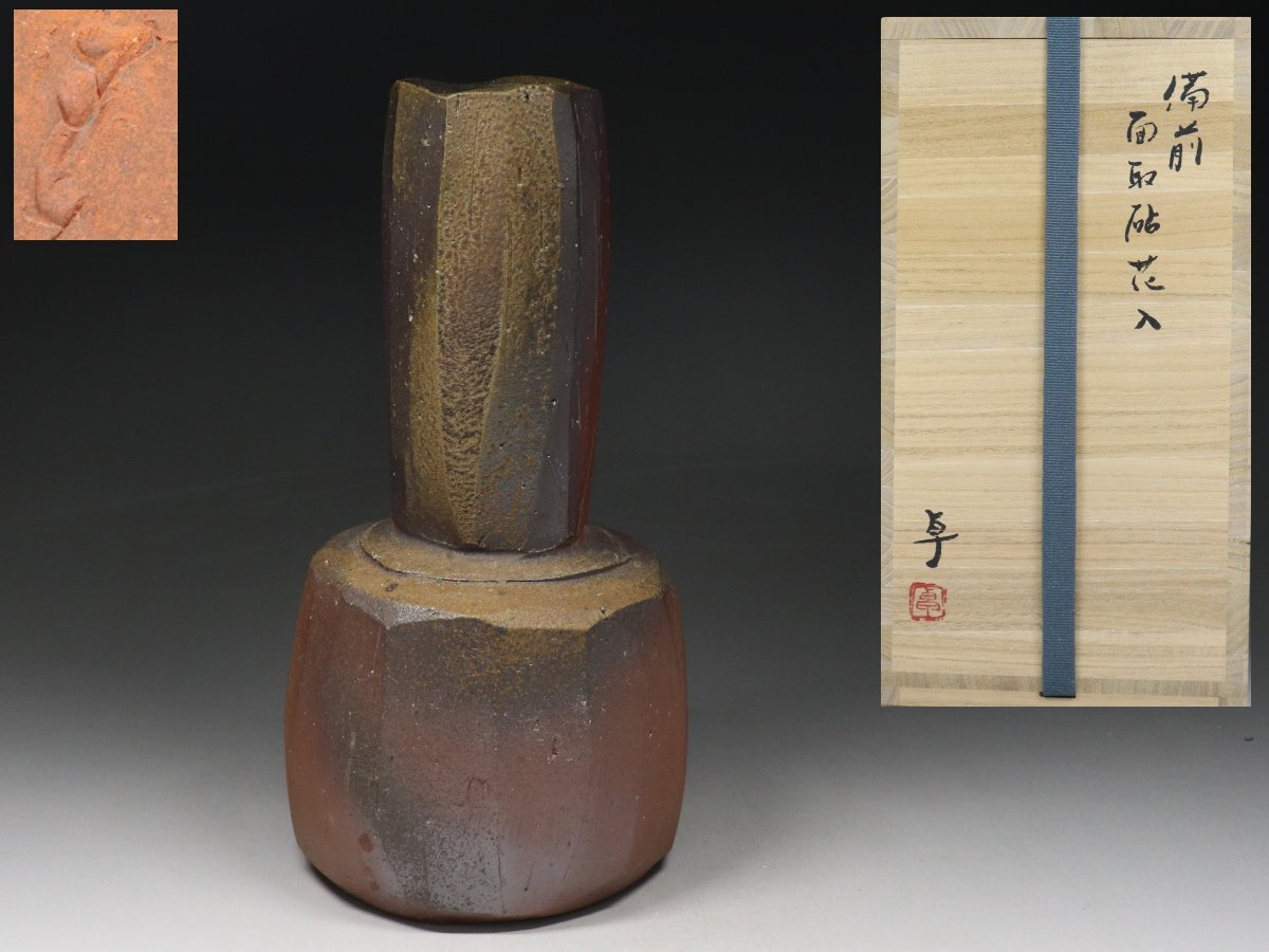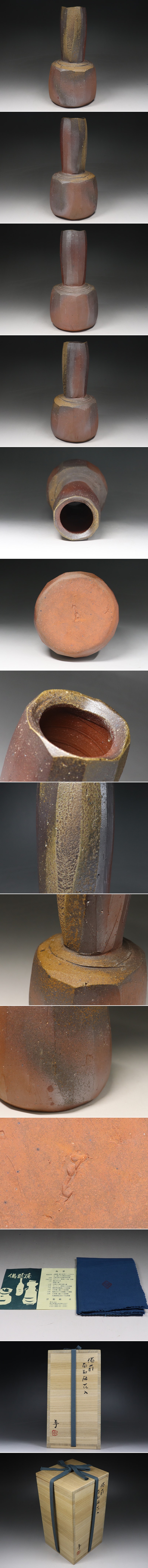 | ■備前■伊勢崎卓・面取砧・花入・花生・花瓶・栞・共布・共箱・検/伊勢崎淳 伊勢崎満・f7158h | ||||||||||||||||||||