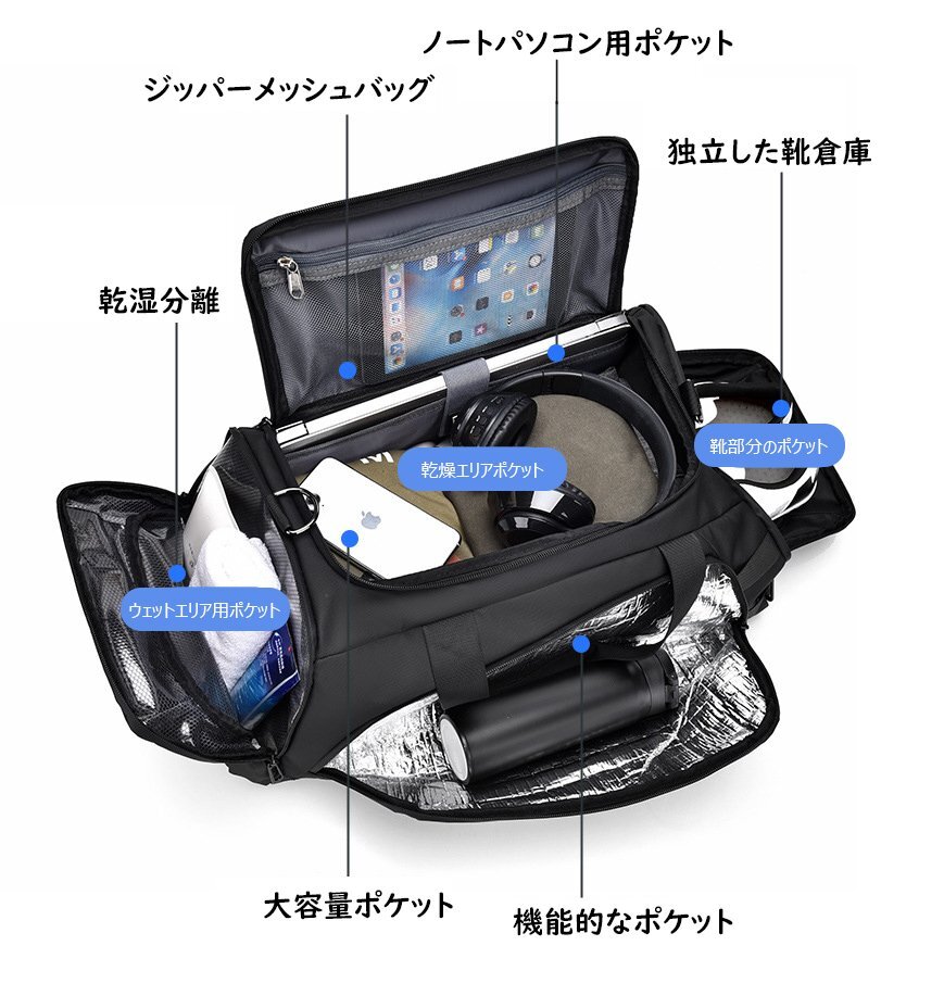 ◆ 40Lの大容量で、片肩、両肩、斜め掛け、手持ちでの持ち運びも可能です。男の子にも女の子にも適した、ファッショナブルで高級な旅行用アウトドアバックパックとゴルフシューズバッグです。