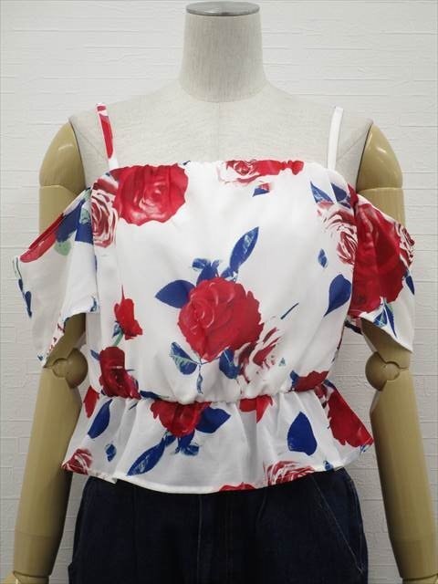 シフォンキャミソール F ホワイト地 レッド 花柄 【メール便可】