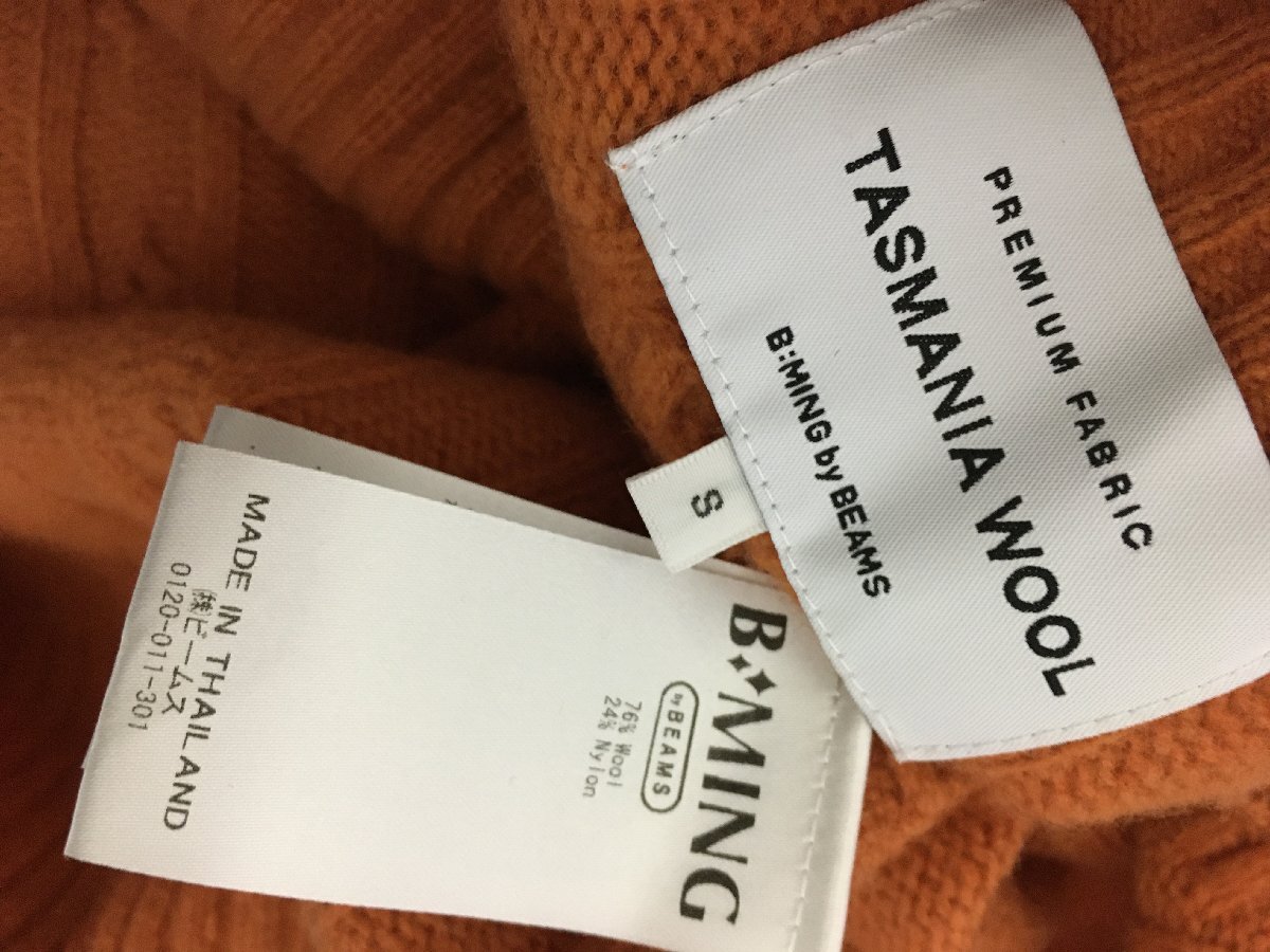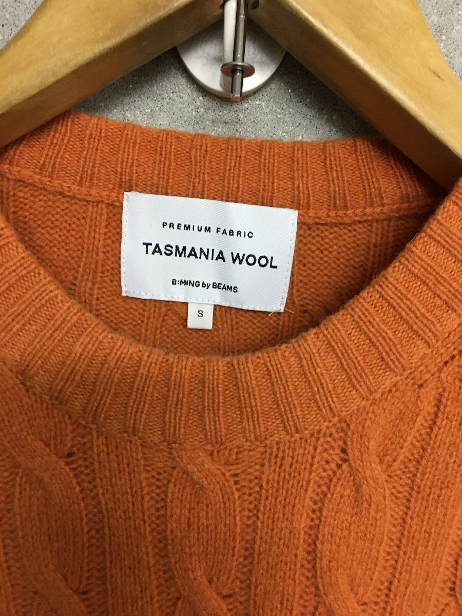 ◆ ◆TASMANIA WOOL B:MING by BEAMS ビームス 美品  ケーブル編み クルーネック ニット セーター オレンジ系  サイズS