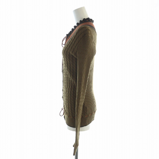グッチ GUCCI ニット カーディガン 長袖 リボン ロゴボタン ケーブル編み シェリーライン ドローコード XS 茶 ブラウン 184059 X9602 ■GY17 /MQ レディース