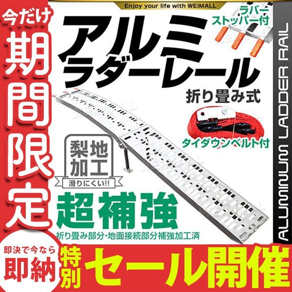 ATV四輪バギー・ダンプやトラック等にユンボやローラー・耕運機・バイクなどを積込みする為の折りたたみ式アルミラダーです。 表面に梨地処理施しており、通常タイプより滑りにくい構造! 車高の低い積込み時に、とても役に立ちます。 軽量加工、滑り止め加工もしております。 折たたみ部分や地面接続部分を補強加工致しておりますので、 より重いものでも耐えられるようになりました。 仕 様 折りたたみ式 全長:約2,180mm 折りたたみ時サイズ:約1110×300×145mm 耐荷重:340kg 幅 : 280mm 重量 8.0kg 素材 : アルミ ※写真と実物は多少異なる場合がございます。あらかじめご了承下さい。 ※画像にございます、アルミラダーを立てかけた黒い台は付属しておりません。 |