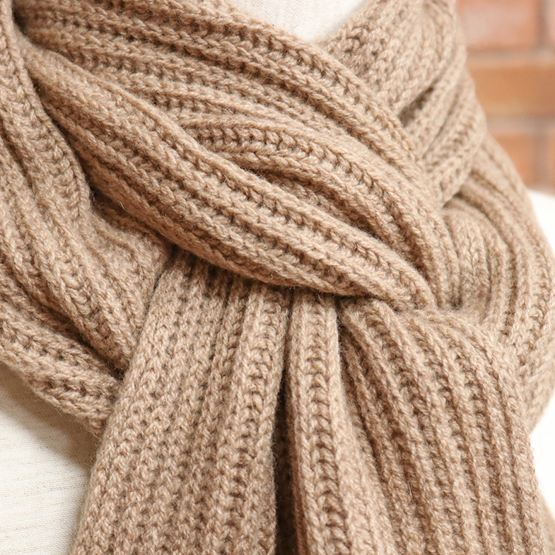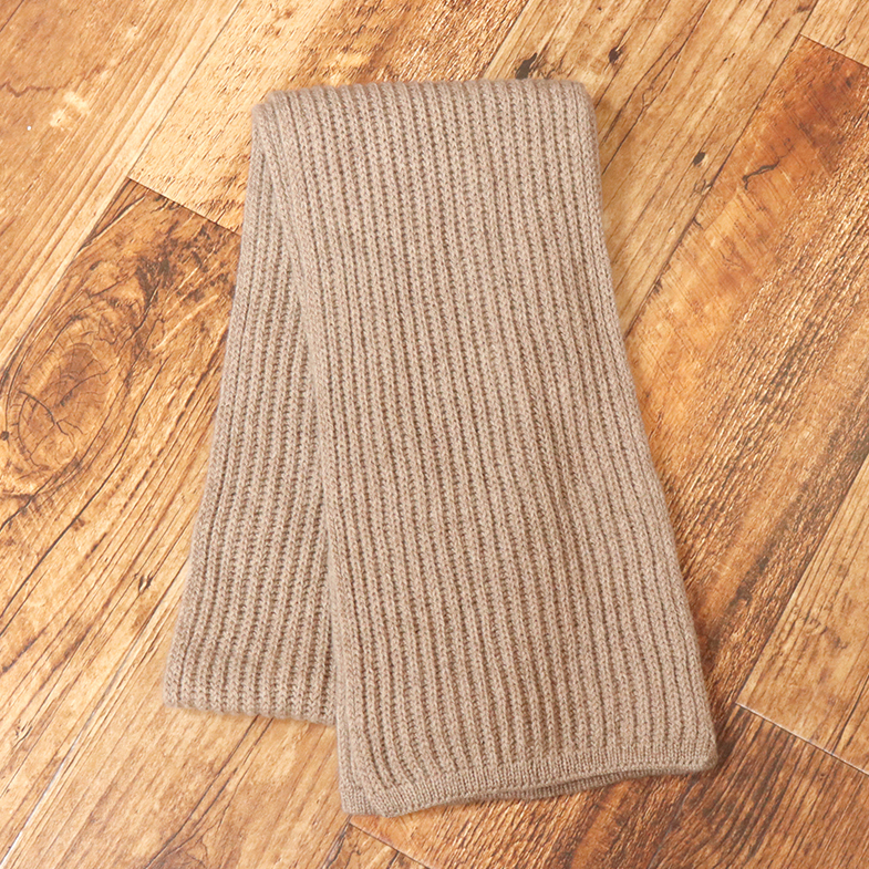 表情豊かな凹凸のある片畦編みのカシミヤニットマフラー。縮絨加工をすることにより、カシミヤがより柔らかくふんわりとした肌触りに仕上がっています。優しく包みこまれるように暖かく、それでいて軽やかなつけ心地で、寒い日のコーディネートに大活躍してくれるアイテムです。