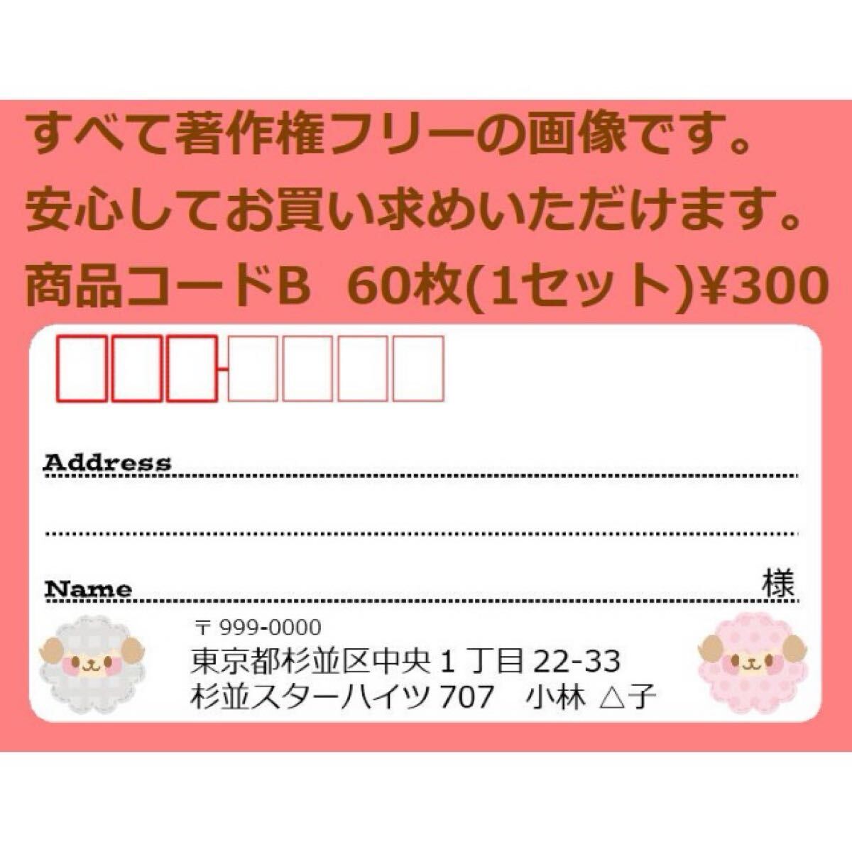 商品コードB 宛名シール 同一柄60枚 差出人印刷無料です