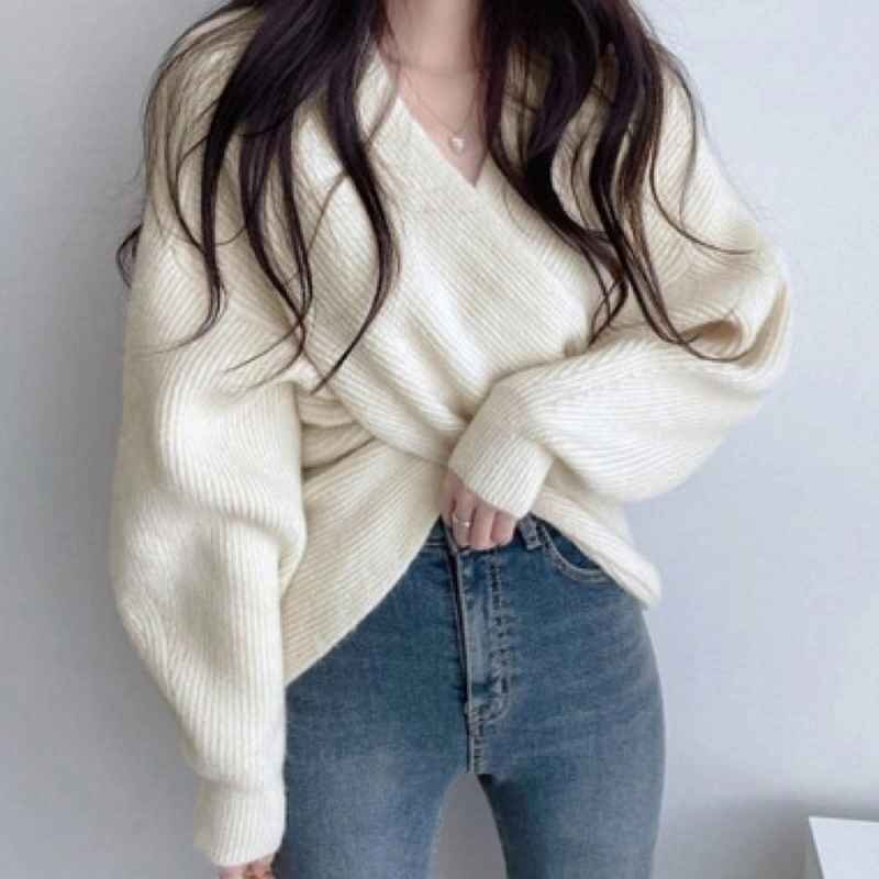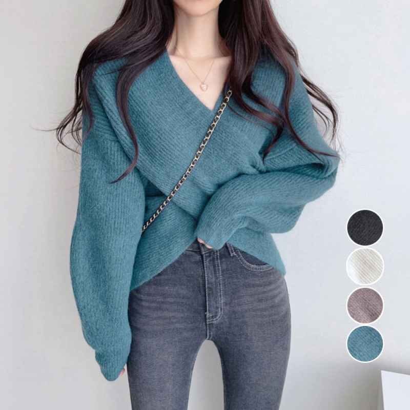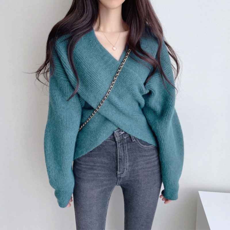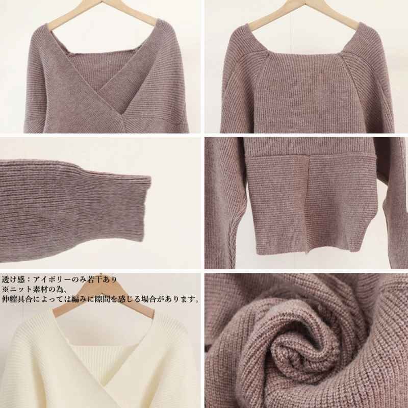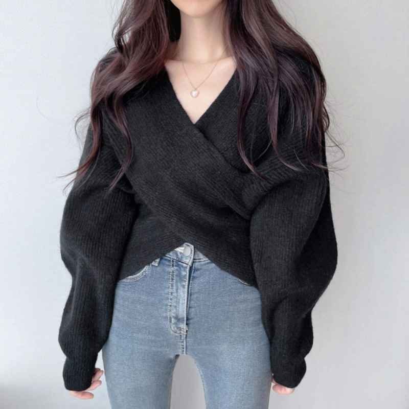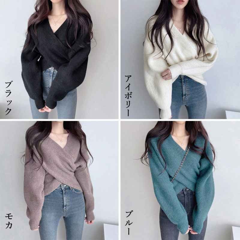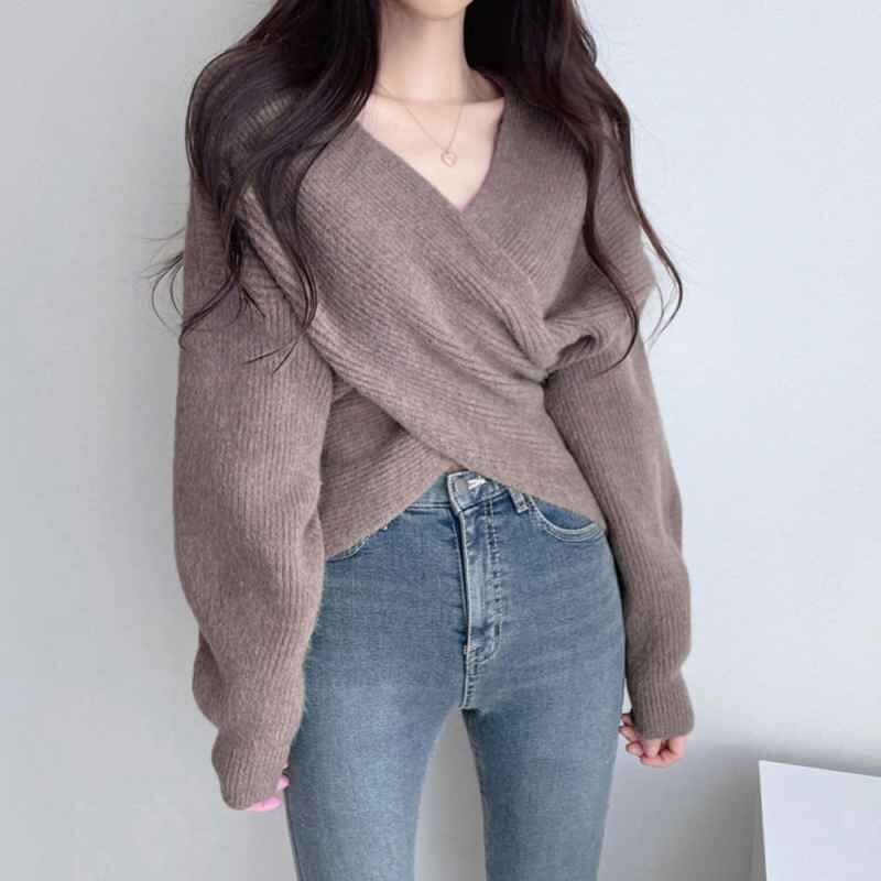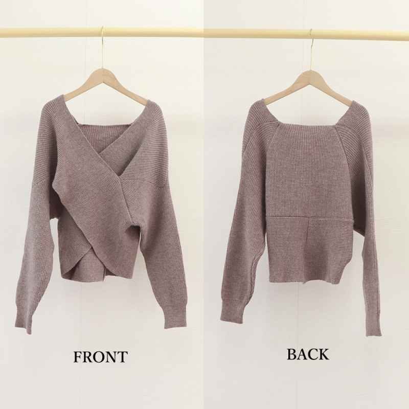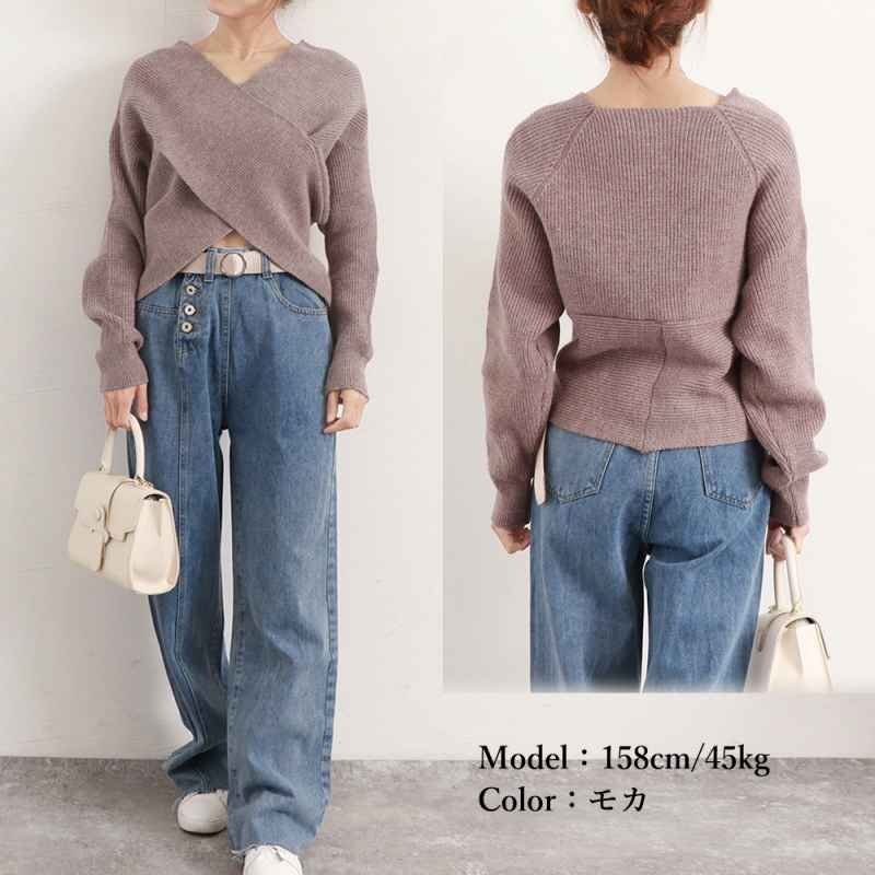 クロスに重なったデザインが主役級なカシュクールニットトップス