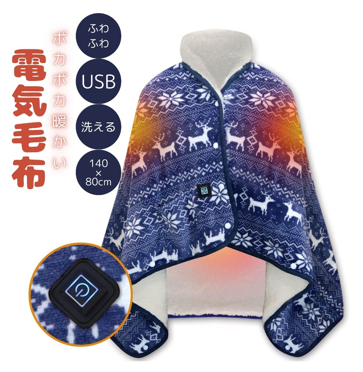 電気毛布 掛け敷き兼用 電気ブランケット usb ブランケット 140x80cm キャンプ ひざ掛け 敷き 掛け毛布 洗える 3段階温度調節 暖房器具 アウトドア 車用 野球