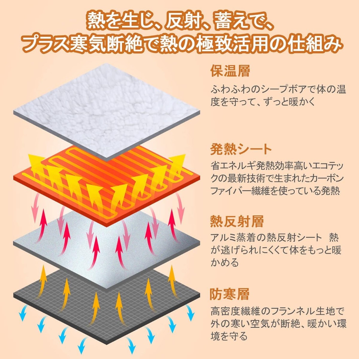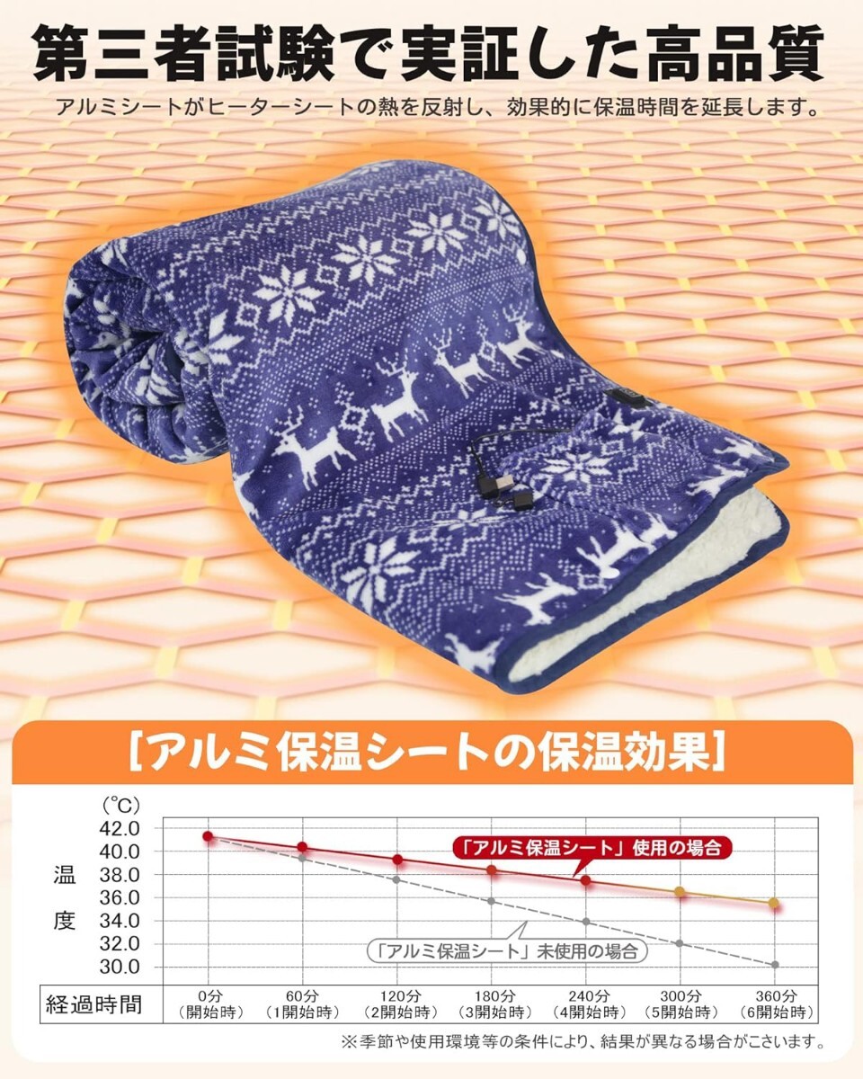 【新素材で保温性アップ】 アルミシートは、ヒーターシートからの熱を反射し、外からの冷気を遮断する新素材です。保温時間を効果的に延長することができます。
