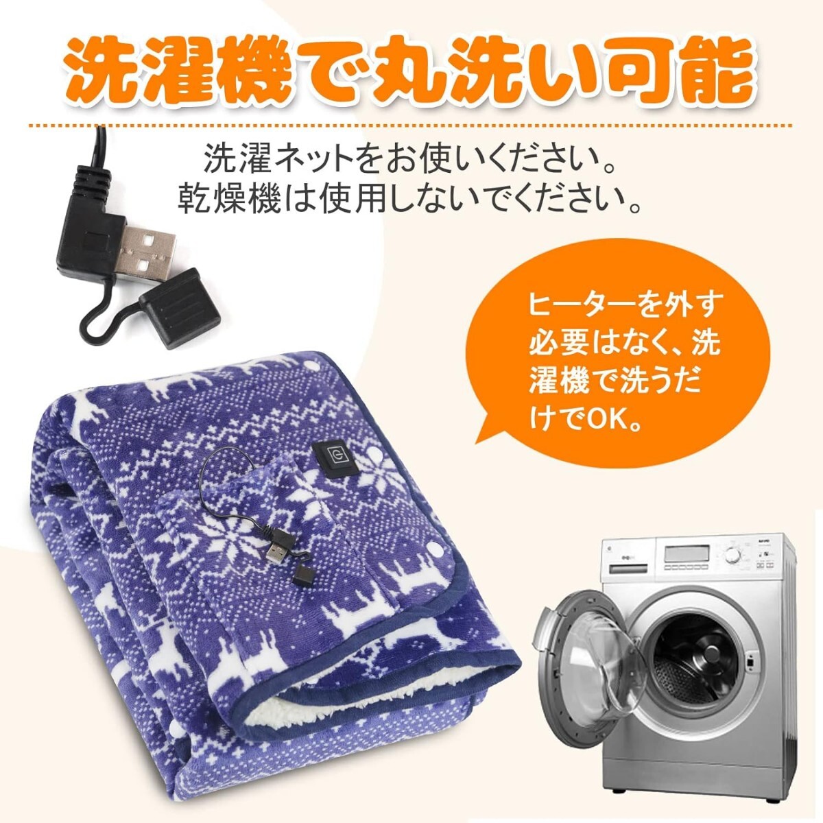 【丸洗い手洗い可能】ヒーターユニットは取り出す必要がなく、直接丸洗い手洗いでも大丈夫です。電気毛布のコネクタは絶縁防水処理を設置しており、洗濯する前にUSB延長コードを取り外すだけ洗えます。(洗濯機に洗濯する際には洗濯ネットをお使いください)