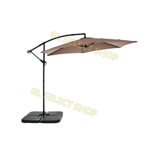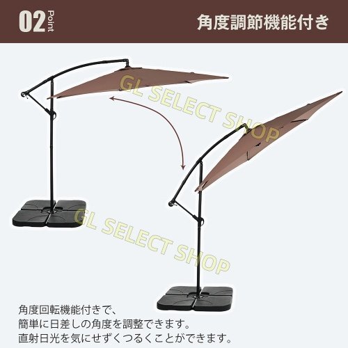 【ブラウン・ベース付き】パラソル+ベースセット 直径300cm 30+UPF紫外線対策 角度調整 パラソルセット ベース パラソル ガーデンパラソル