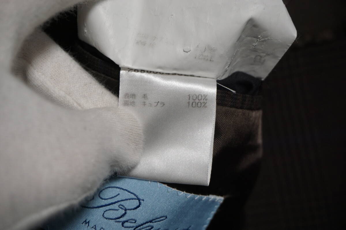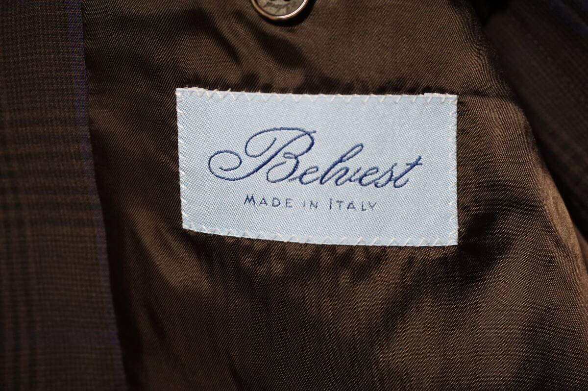 タイトル:【美品】Belvest ベルベスト テーラードジャケット 【サイズ46】 ウール グレンチェック ブラウン 本切羽 背抜き