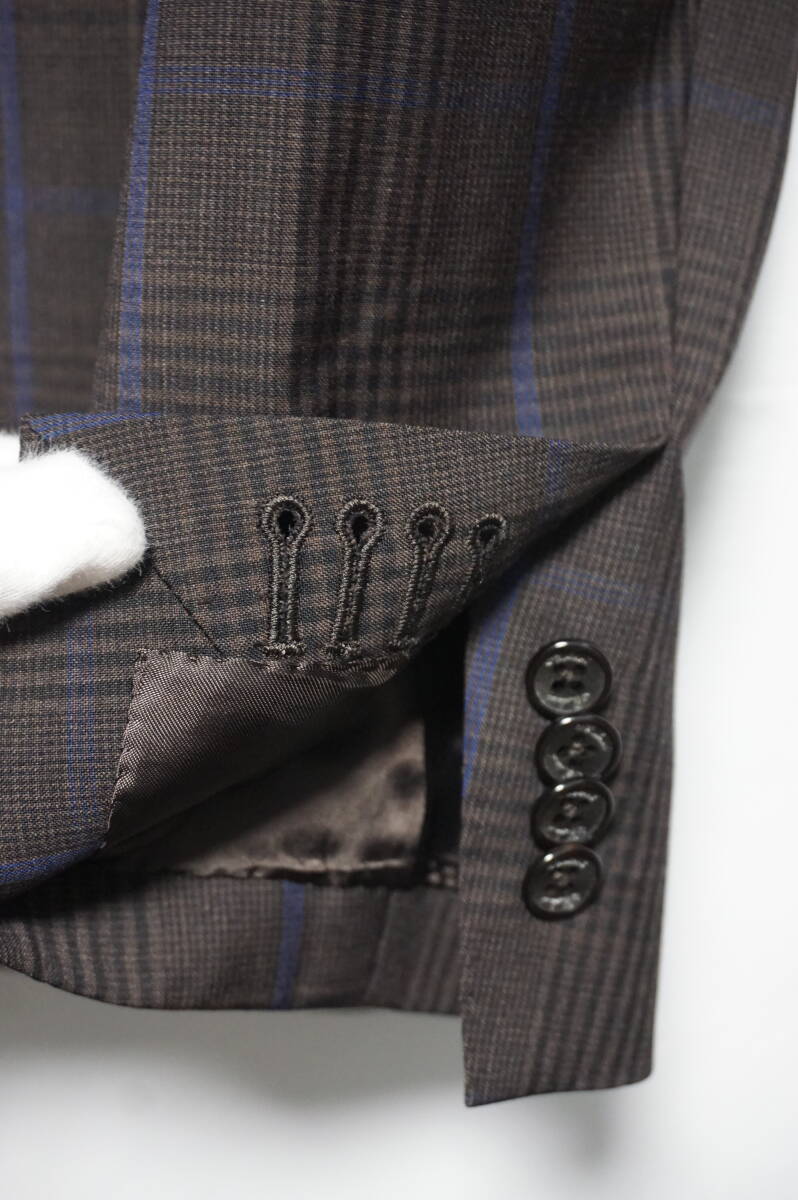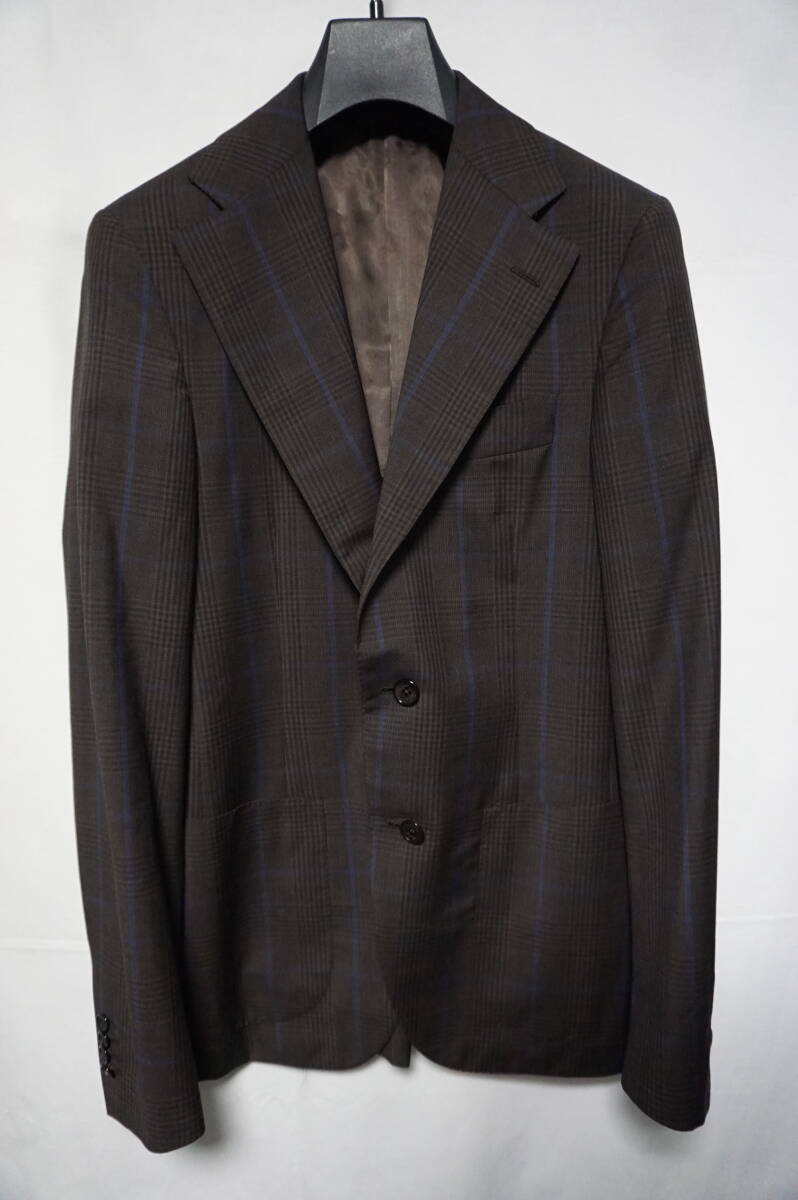 【美品】Belvest ベルベスト テーラードジャケット 【サイズ46】 ウール グレンチェック ブラウン 本切羽 背抜き
