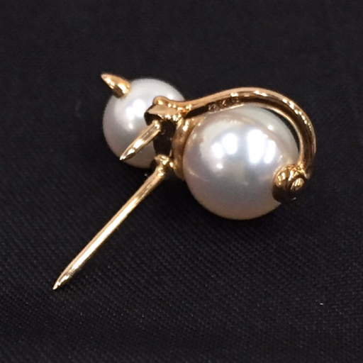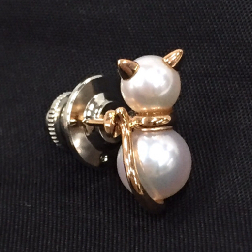| ミキモト K18 猫モチーフ パール 真珠 約0.5~0.7cm珠 タックピン 3.7g レディース アクセサリー MIKIMOTO |