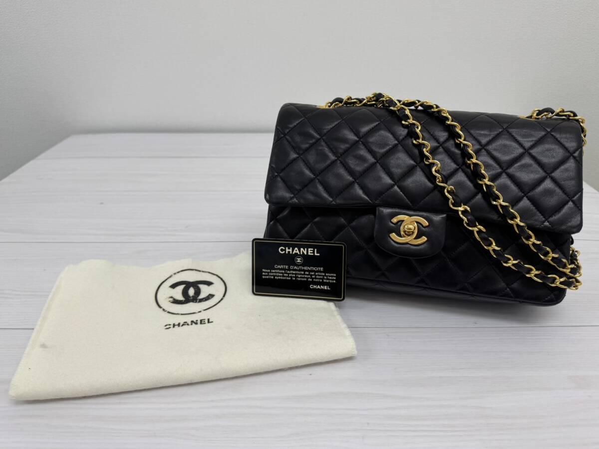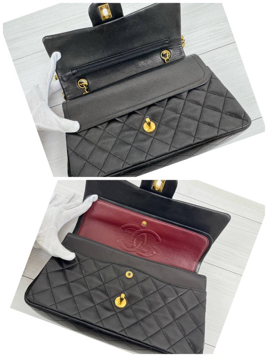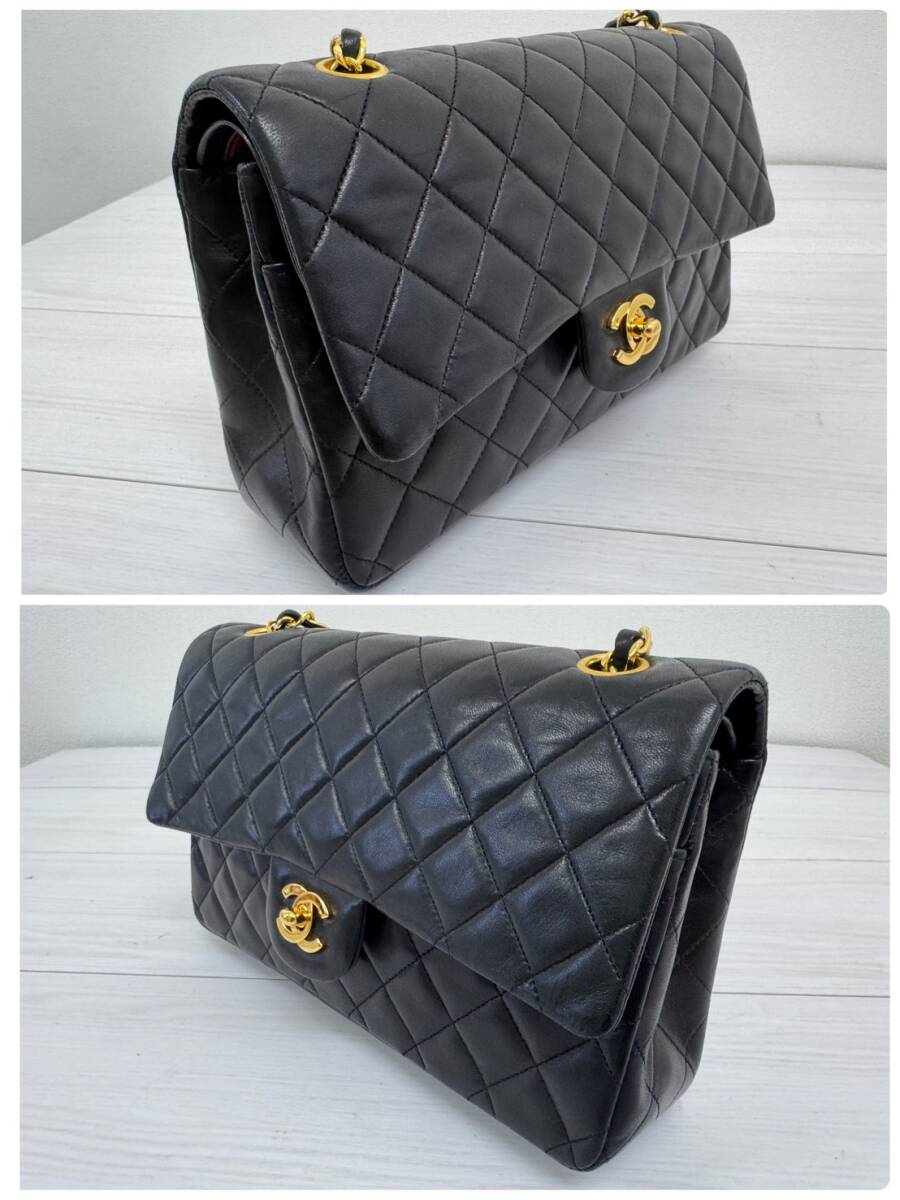 【美品】CHANEL シャネル マトラッセ25 チェーンショルダーバッグ ラムスキン ダブルフラップ ブラック ゴールド金具 1円スタート