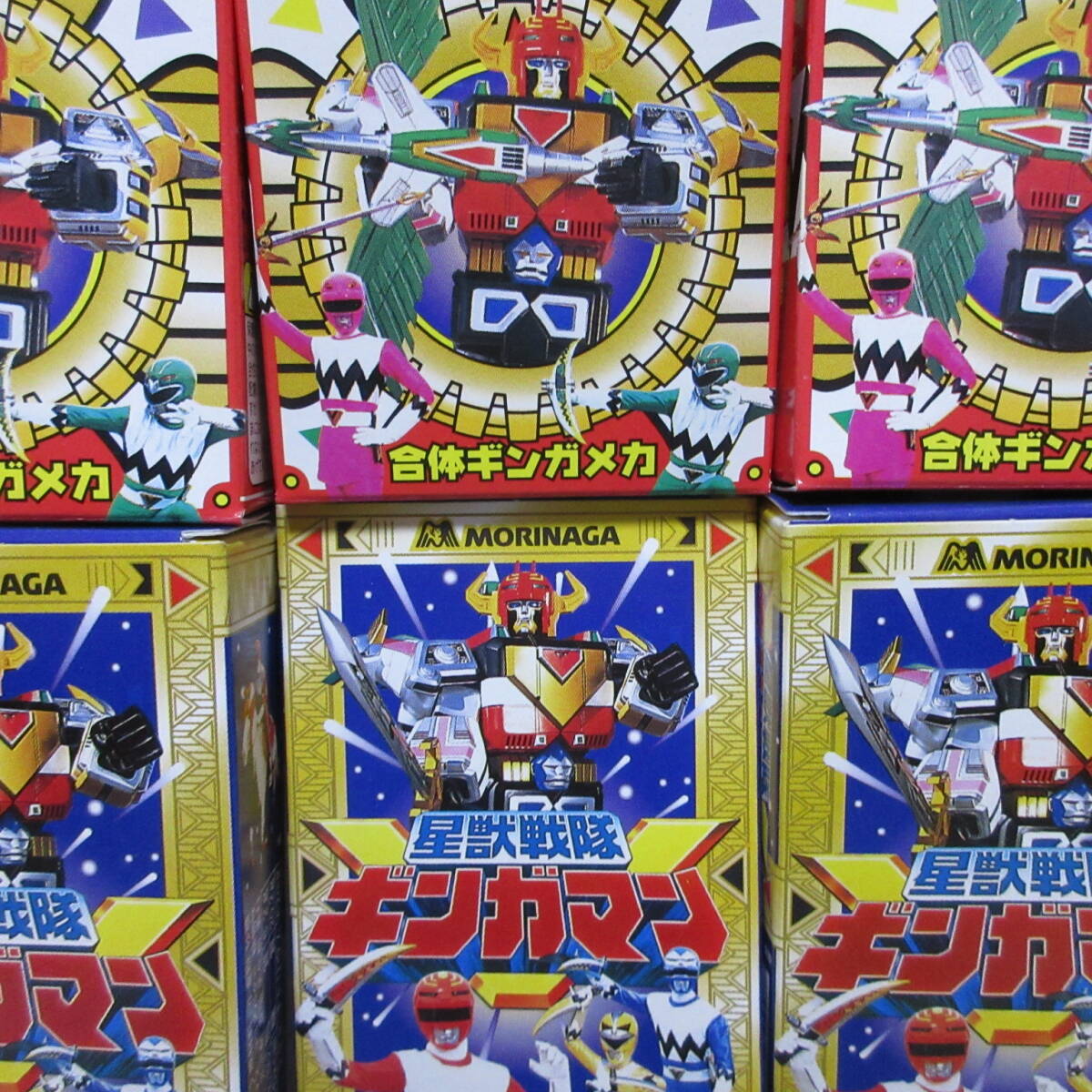 | 商品名 | 約27年前の「 星獣戦隊ギンガマン」が本放送されていました1998年にMORINAGAより発売されました,食玩の「合体ギンガメカ チョコスナック 全6種」をお譲り致します。 |