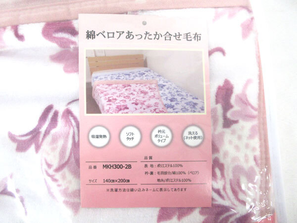 | 吸湿発熱 綿ベロア あったか合わせ毛布 シングル ピンク(柊) | |