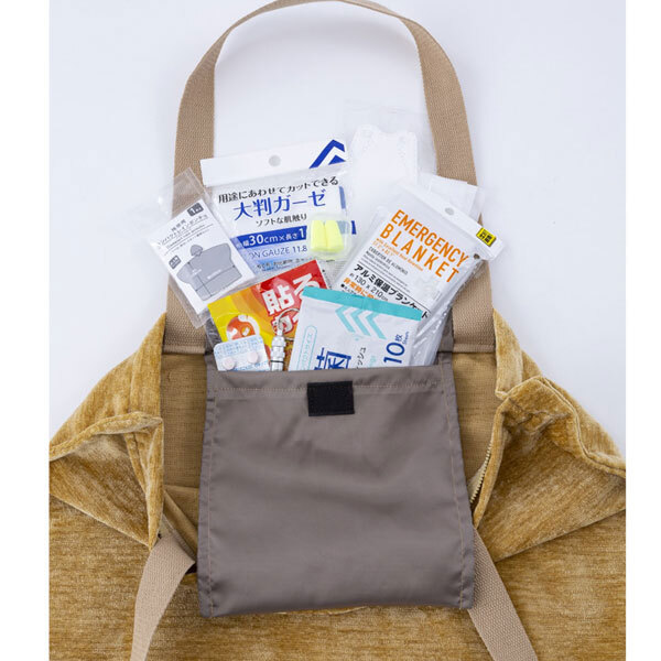 | 内 容 | ■SONAENO 大容量のトートバッグ としても使える 多機能クッションカバー ■サイズ ・本体:約51×50.5cm ・外ポケット:左、右=約12×19.5cm 中=約23.5×19.5cm ・内ポケット:約20×21cm ■重さ ・約295g ■素材 ・外生地・持ち手:ポリエステル ・内ポケット:ポリエステル、レーヨン ■カラー イエロー ◆参考価格 5990円相当 いつもの便利ともしもの備えを、防災をもっと身近に! 普段はポケット付きで便利なクッションカバーとして、 もしもの時は大容量のトートバッグとして使用できる、多機能クッションカバーです。 外側の3つのポケットには日常で使うリモコンや読みかけの本、 スマートフォン、ウェットティッシュ、タブレットなどを一時収納可能。 内側ポケットには防災アイテム (カイロ,エマージェンシーシート,ウェットティッシュ,ガーゼ、 絆創膏,簡易トイレ,カッパ,鍵,常備薬,ビニール袋など)を収納できます。 あらかじめご自身が必要となるであろうものを入れておくことで、もしもの備えに。 トートバック時の耐荷重は12kgあるので、 2リットルペットボトルの水を6本収納運搬できます。 ご家庭の洗濯機で洗えるので、清潔に使えます(ネット使用)。 |