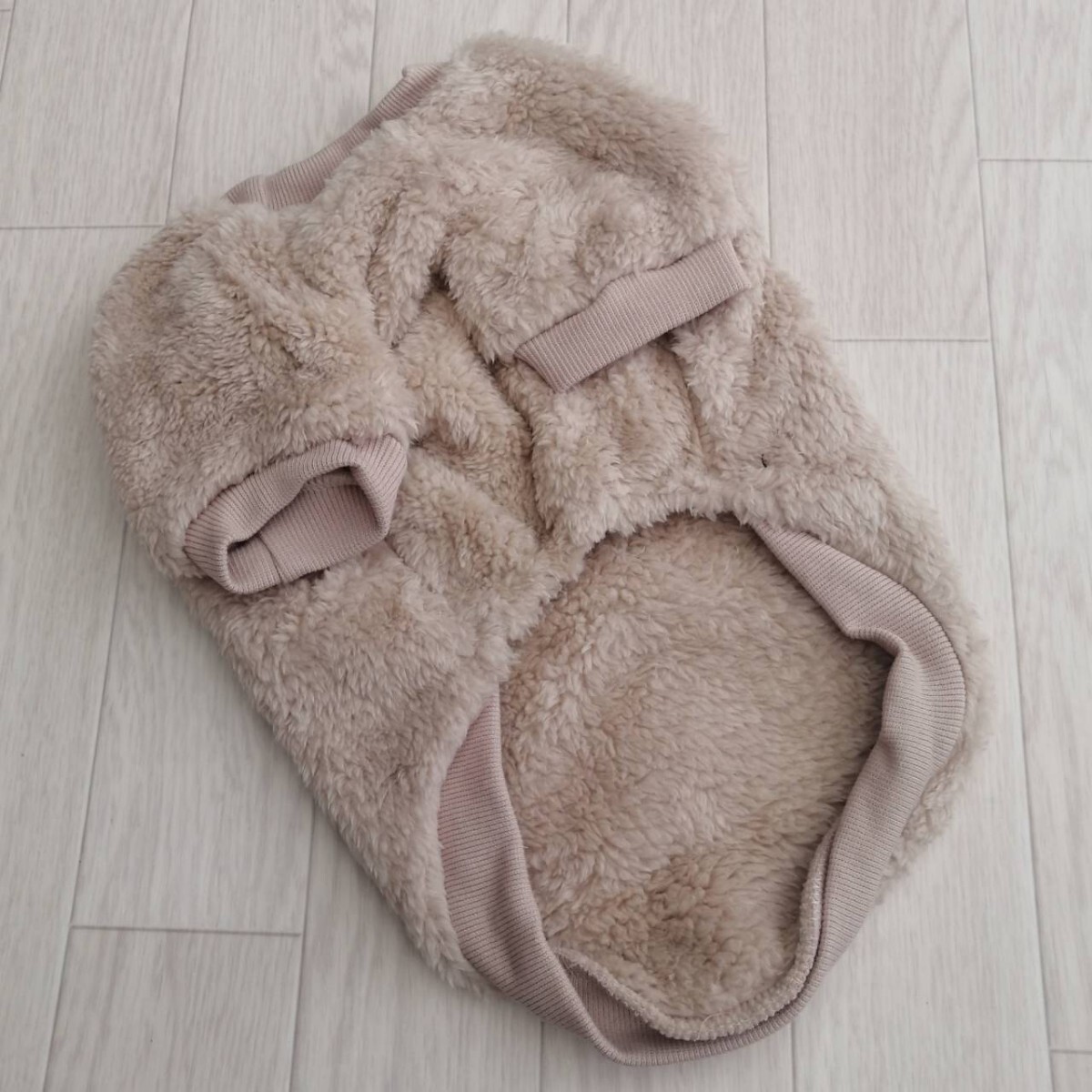 ワンちゃんが心地よく過ごせる、暖かいもこもこウェアです。