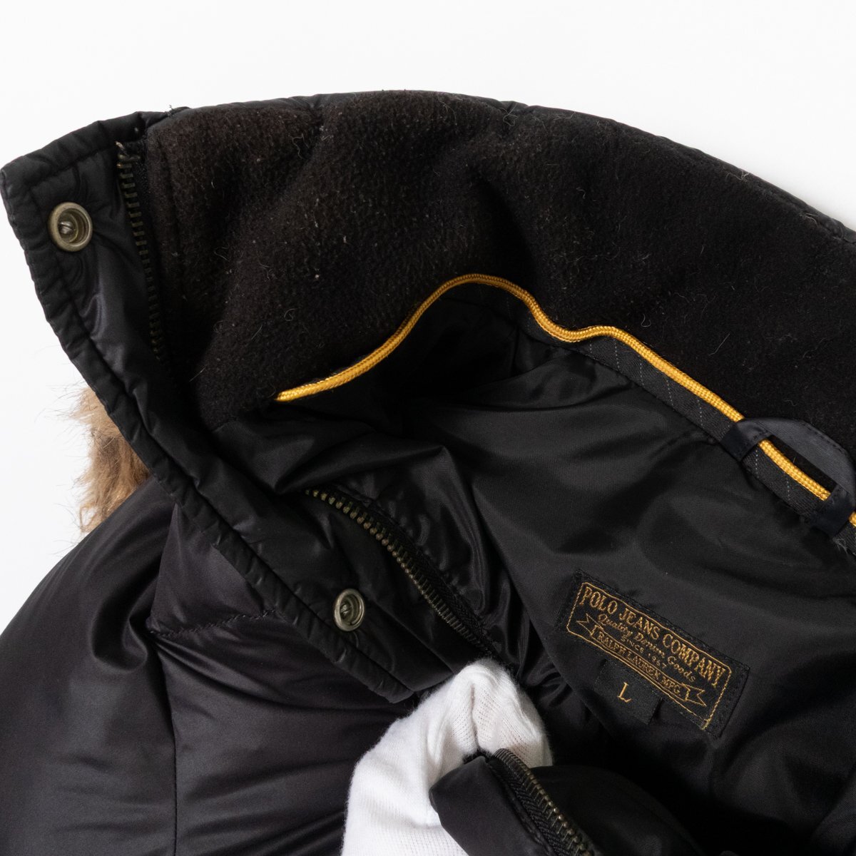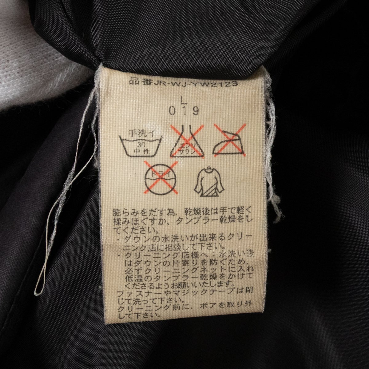 | 状態 | D 全体的に着用感や繊維付着、ネック周りに薄汚れ・毛羽立ち、ボタン金具にくすみ変色、袖リブに毛玉、ジップ下に縫いめほつれ、品質表示タグの変色ダメージがございます。 |