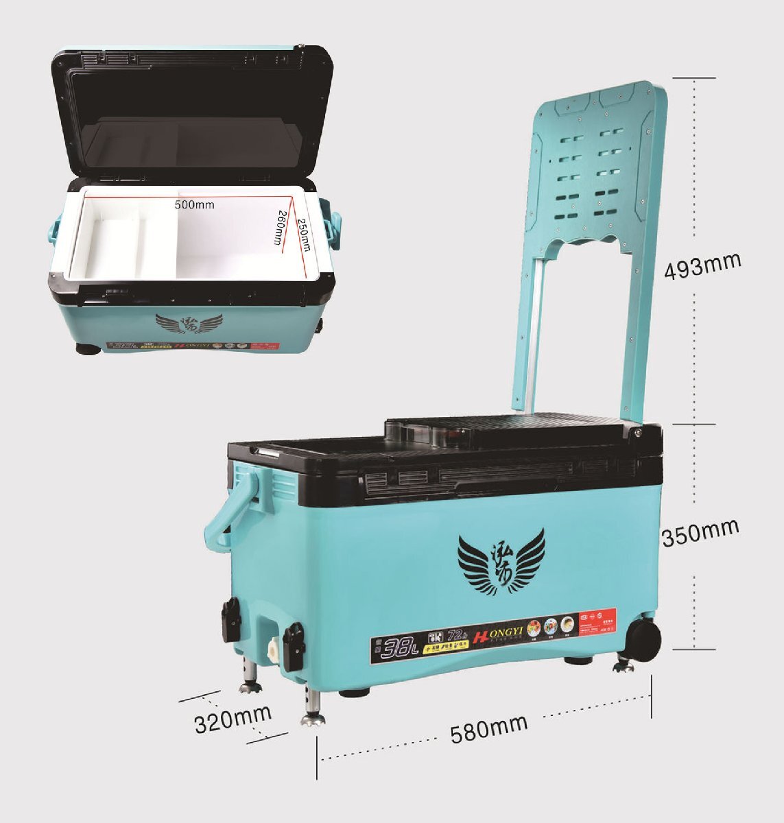 釣り用クーラーボックス 38L 大容量頑丈ボディ 保温保冷 ハンドル/釣りエサ箱/背もたれ/水栓付き 釣り 防水