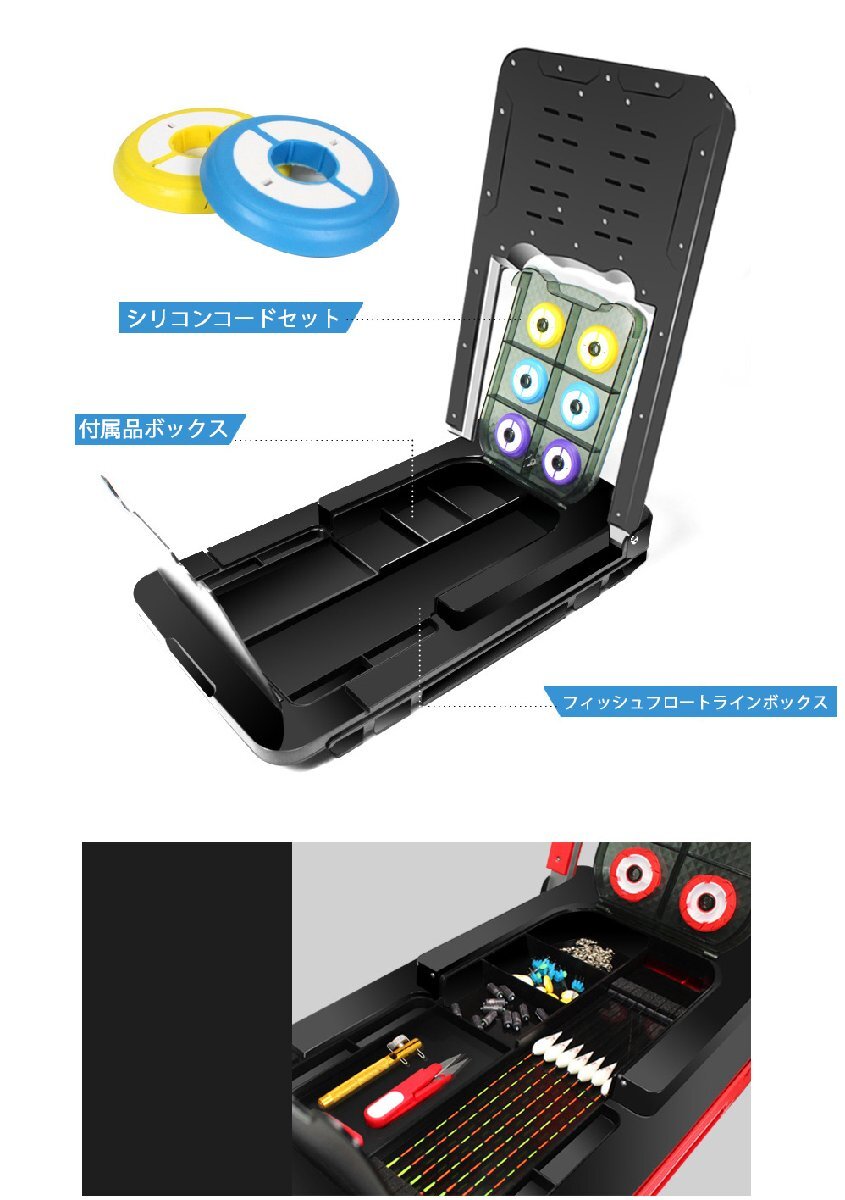 機能および付属パーツ:ハンドル、水栓、背もたれ、高さ調整可能な脚、釣りエサ箱、ショルダーベルト