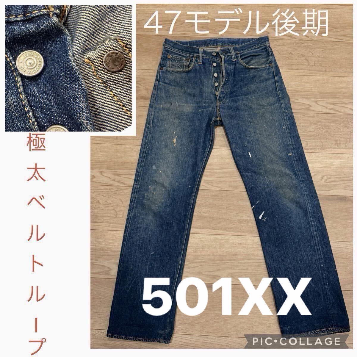 | 50s リーバイス 501XX 47モデル 極太ベルトループ 片面タブ W32 L31 革パッチ 隠しリベット刻印15 |