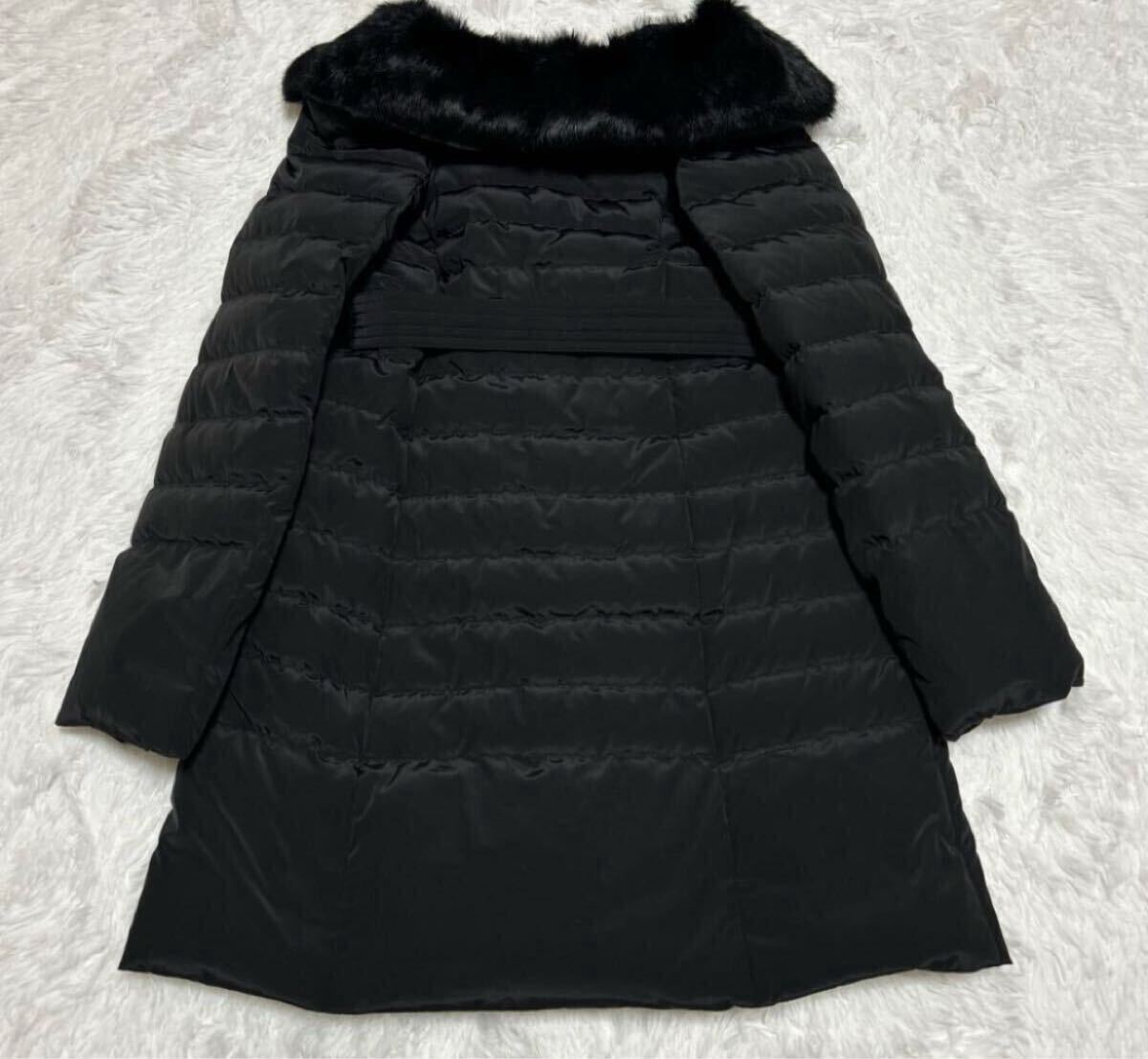 タグ付きの未使用品です。ゴージャスな作りになっております。ファーはラビットを使い、ベルト付きで美しいAラインを作ってくれます。