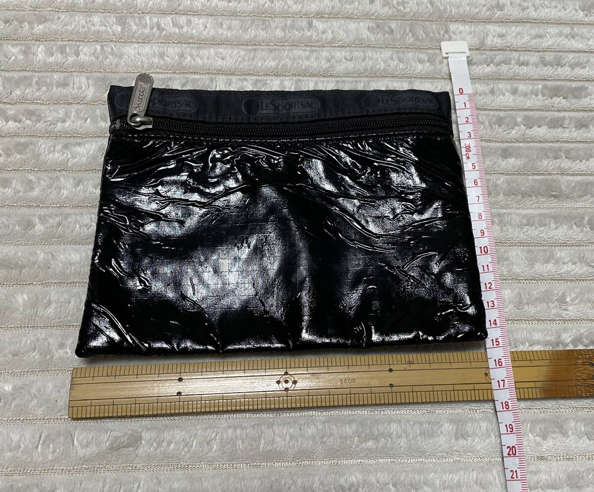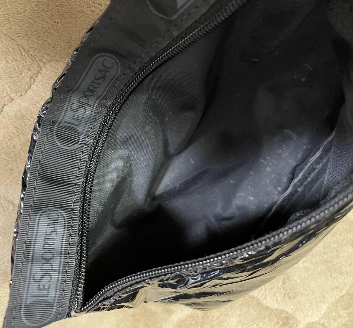 | LeSportsac/レスポートサック ポーチ ブラックしわ加工 使用品 化粧品を入れていたのでファウンデーションの汚れが内側にあります。 ファスナー付近にしわがよれています。 | |||