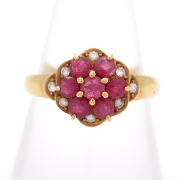 ノーブランド Unbranded リング 11.5 号 K18YG×ダイヤモンド×ピンク 総重量:3.4g/0.68刻印/0.08刻印 アクセサリー(指)