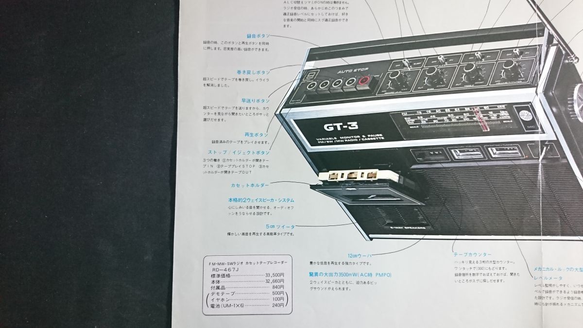 | 【昭和レトロ】『SHARP(シャープ) FM/MW/AM ラジオつき カセットテープレコーダー GT-3(RD-467J) カタログ 1972年12月』シャープ株式会社/ラジカセ | |