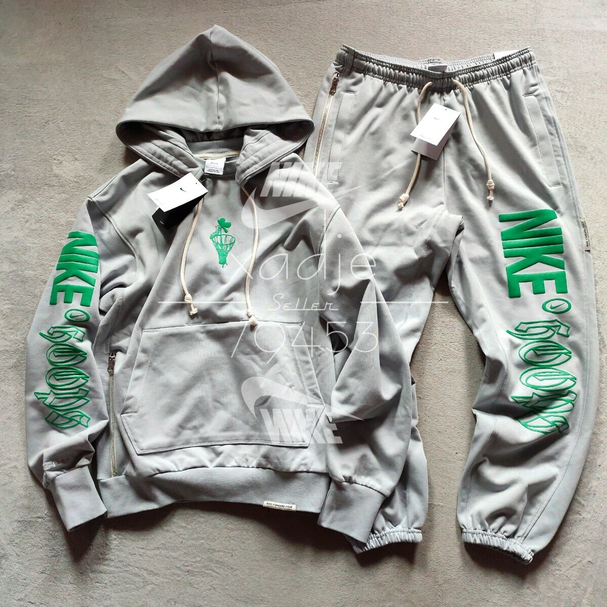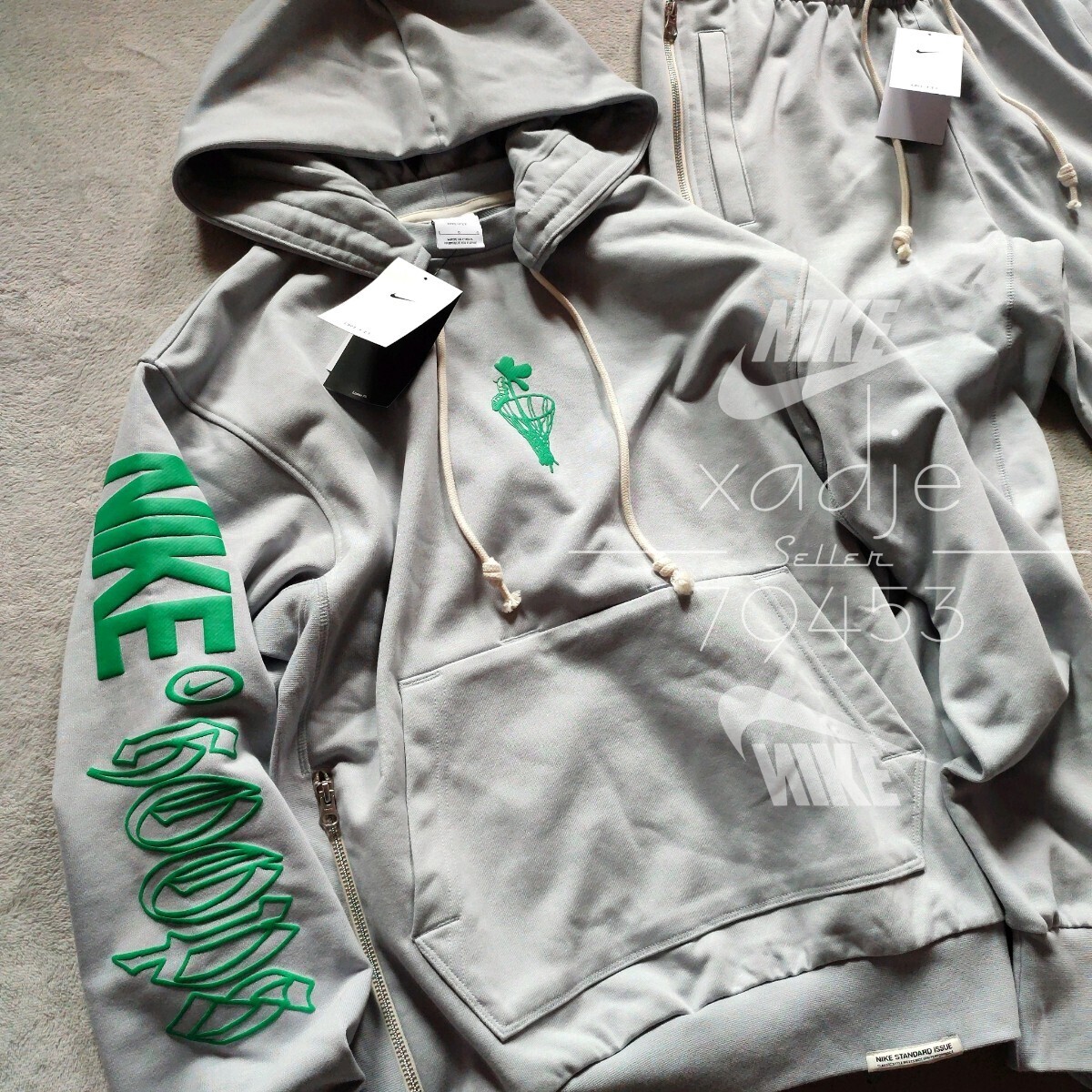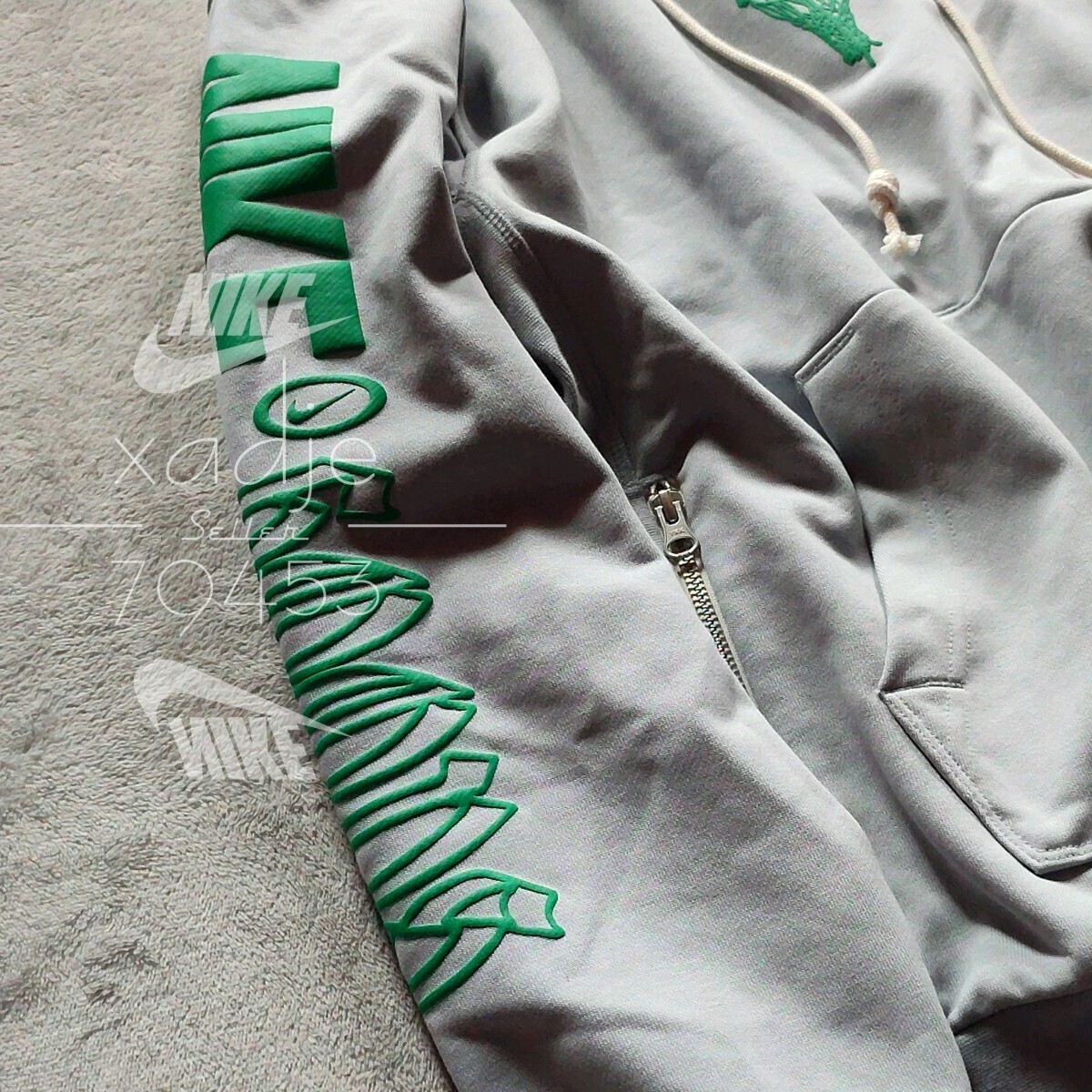 新品 正規品 NIKE STANDARD ISSUE ナイキ スウェット 上下セット パーカー パンツ 刺繍 セットアップ 定価25190円 グレー系 緑 XL