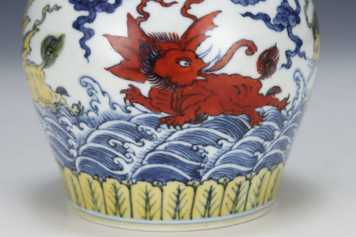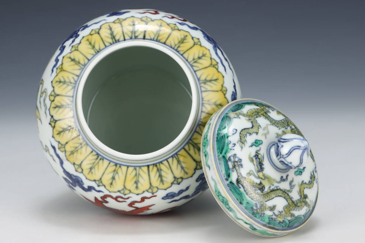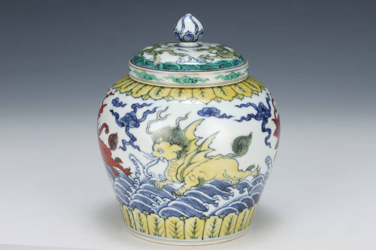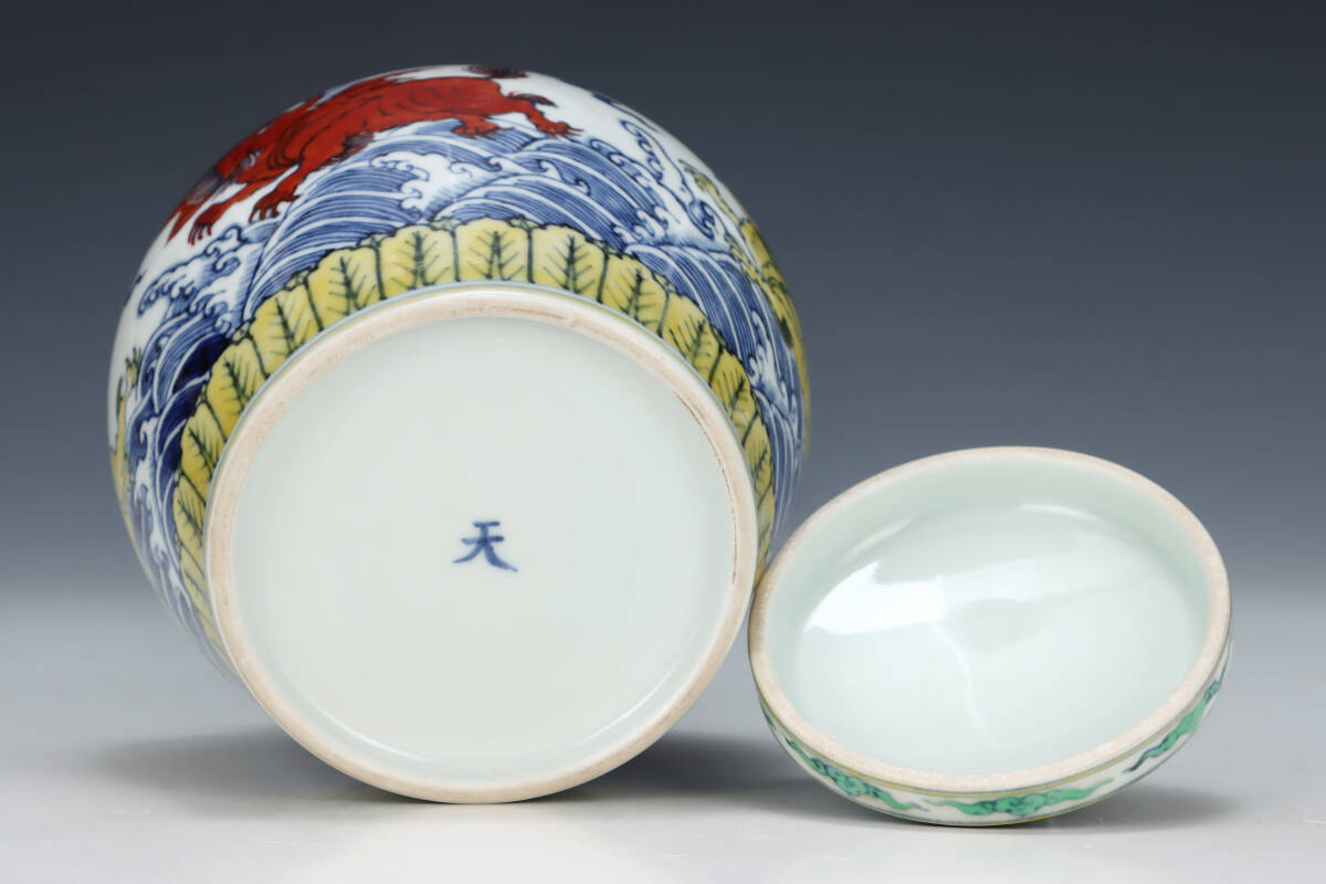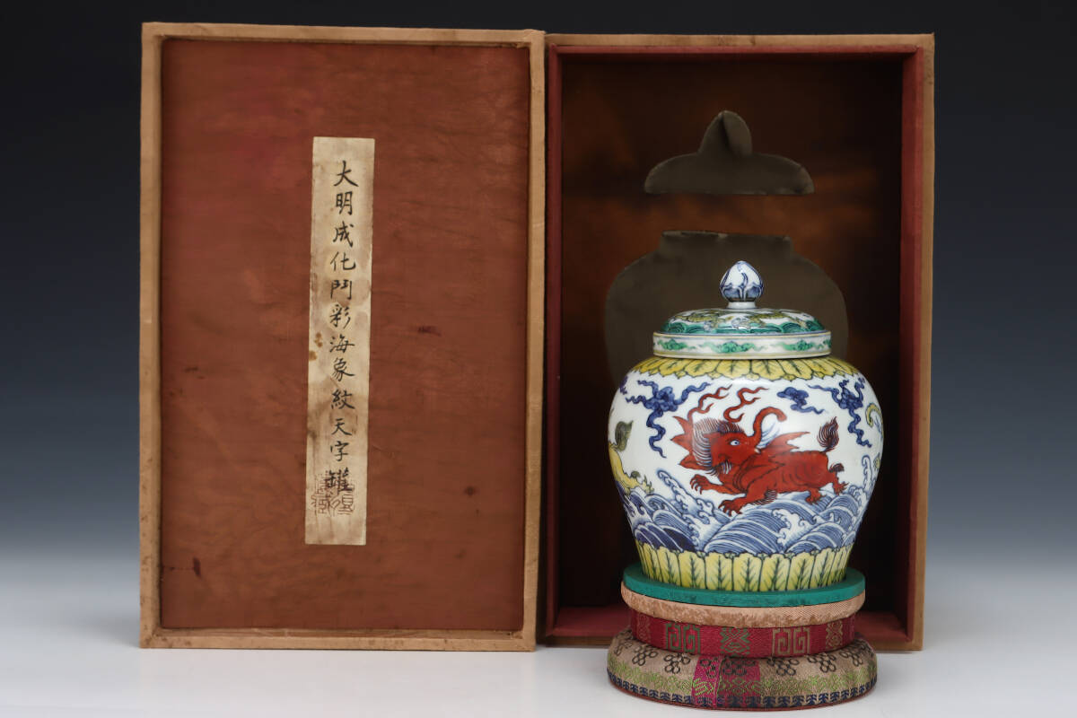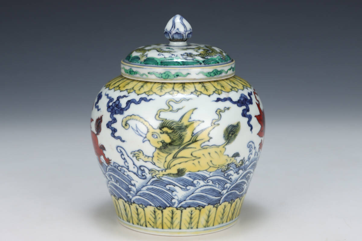 旧蔵 大明 成化年製 斗彩海象紋 天字罐 陶芸 古陶磁器 中国磁器 極細工 中国古玩 骨董品 古美味 211