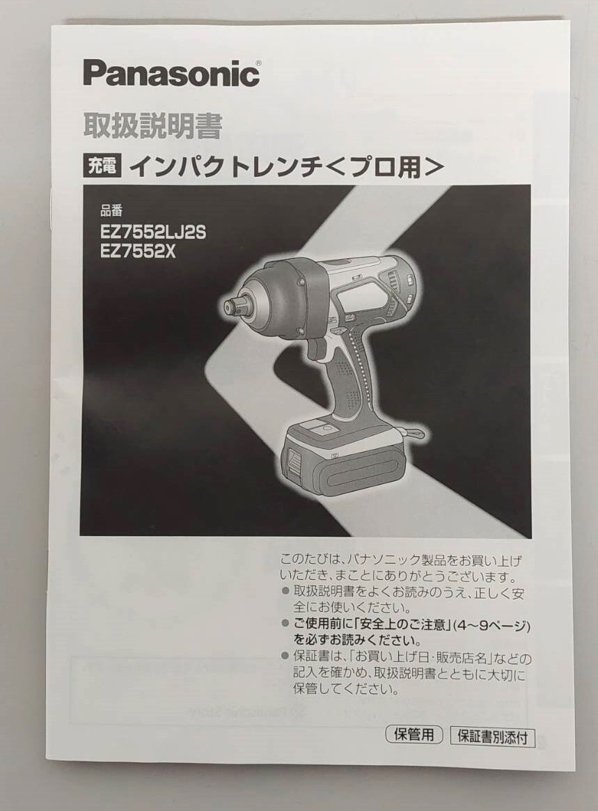 未使用!!パナソニックEZ 7552X-Hインパクトレンチ(グレー)本体&リチウムイオン電池パックUタイプ