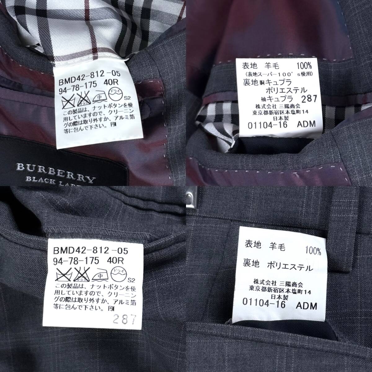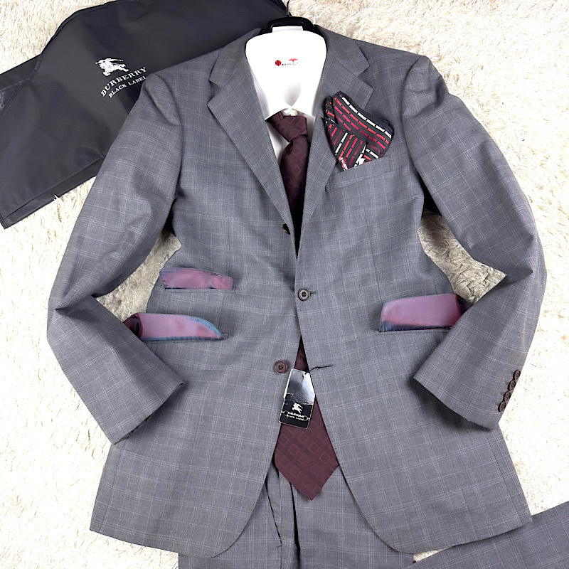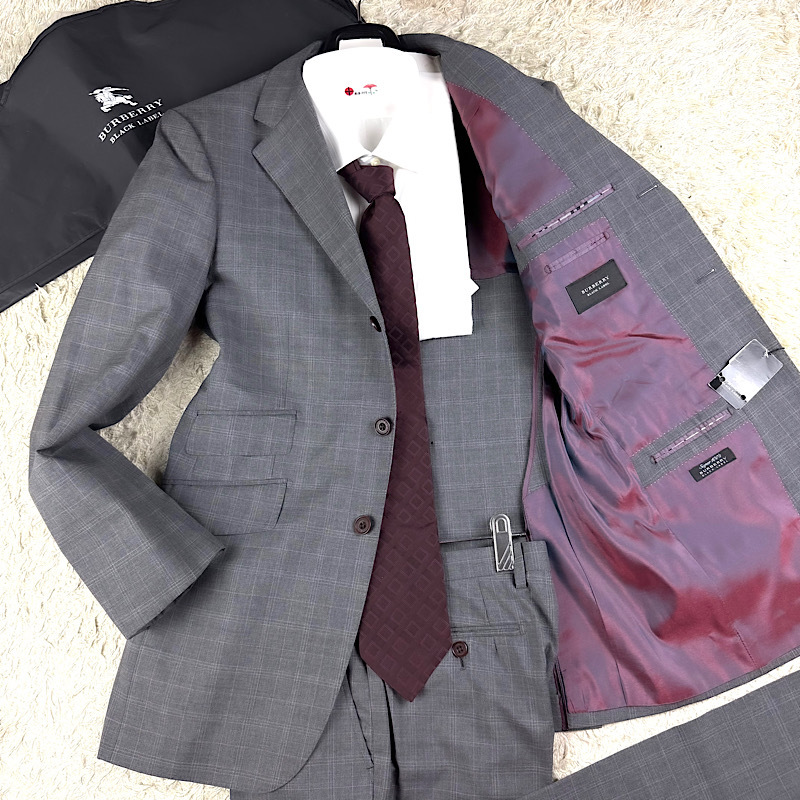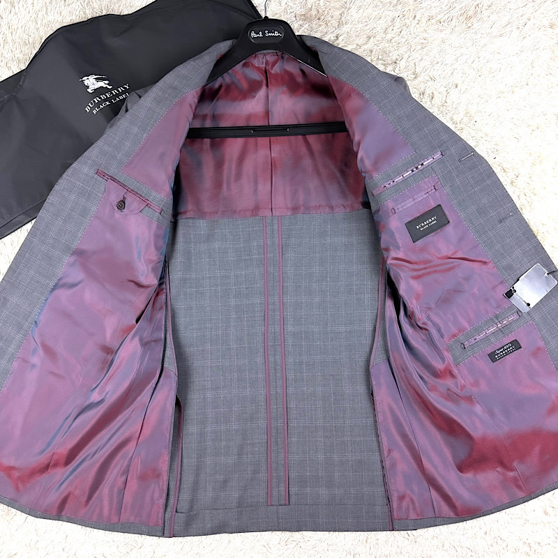 未使用級XL.LL~L!BURBERRY BLACKLABELセットアップスーツ40Rワインパープル ウインドペンノバチェック柄ブラレ バーバリーブラックレーベル