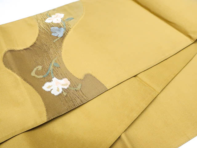 リサイクル商品ですが状態の良い綺麗なお品でございます。 地色は黄土です。 1枚目の画像が近いお色かと思われます。 素材は正絹です。 |