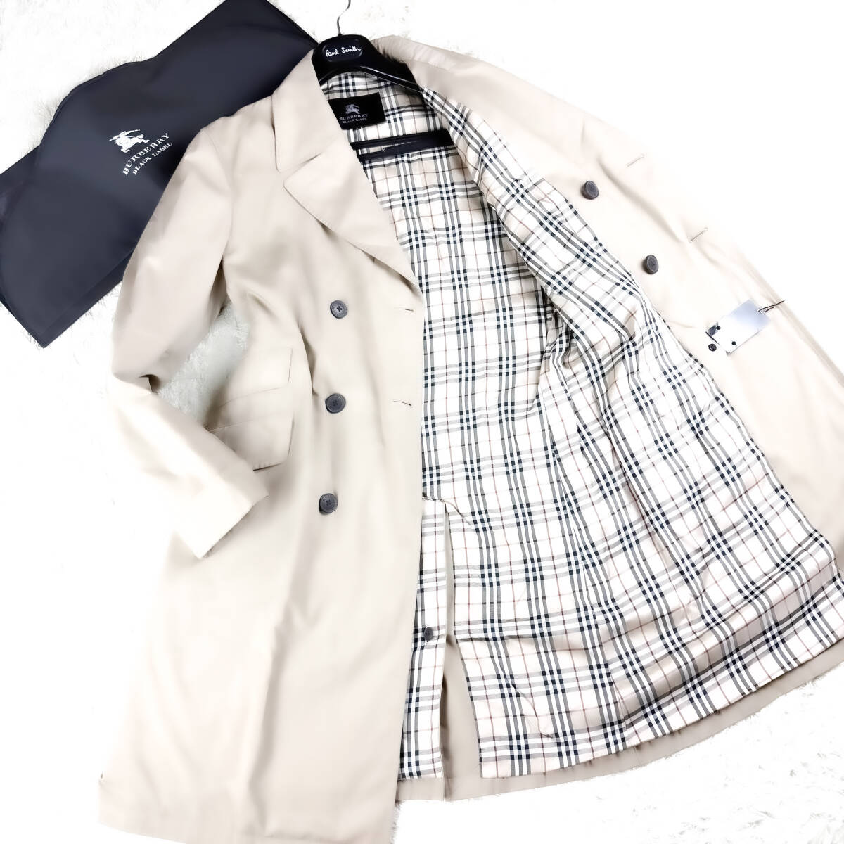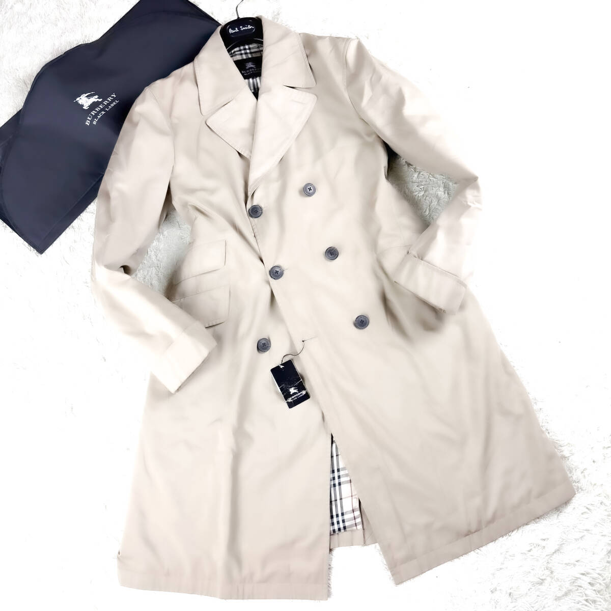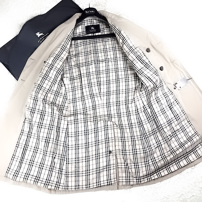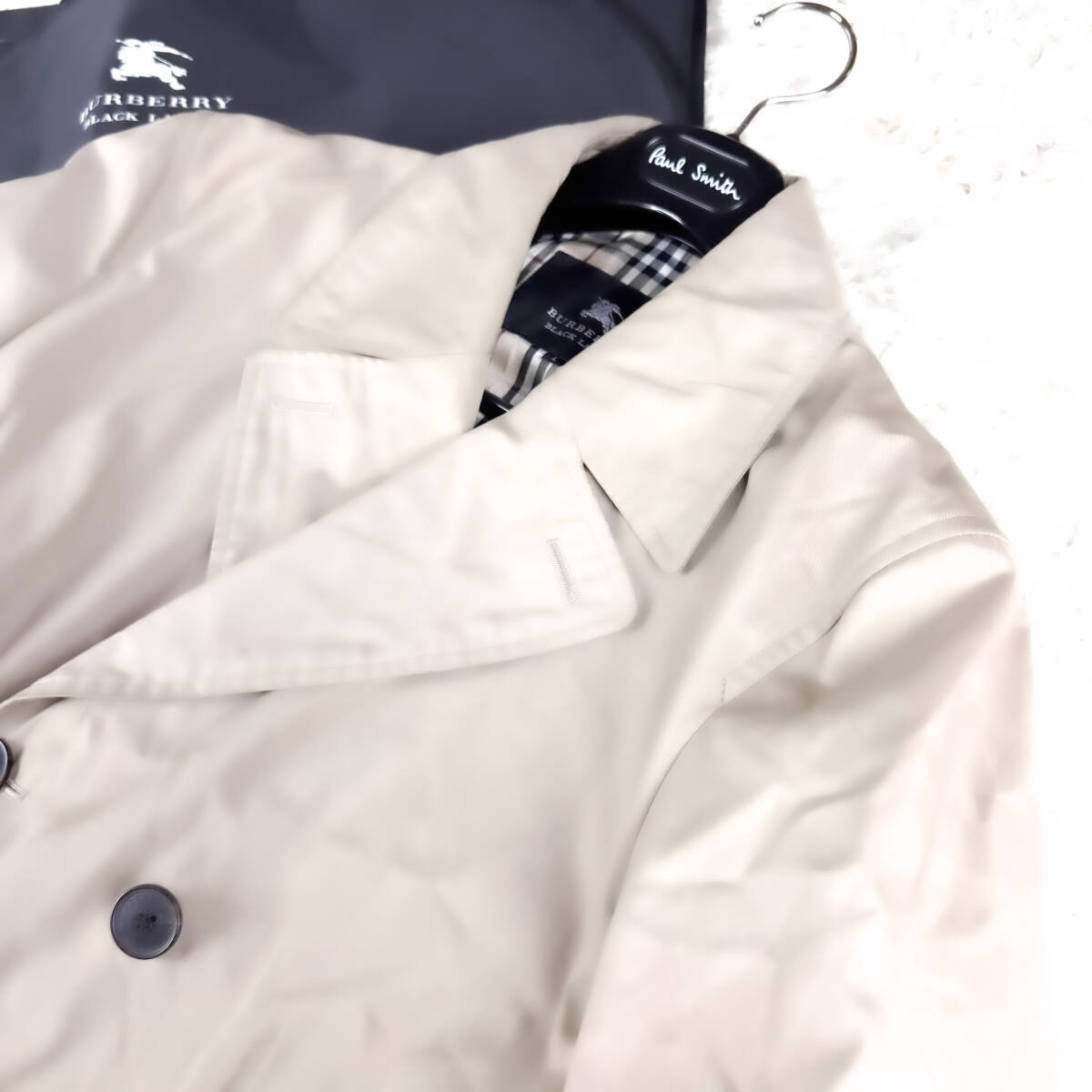 激レアLL~LロングBURBERRY BLACK LABELナポレオンコートXL~Lマリントレンチ ノバチェック柄ベージュ ブラレ バーバリーブラックレーベル