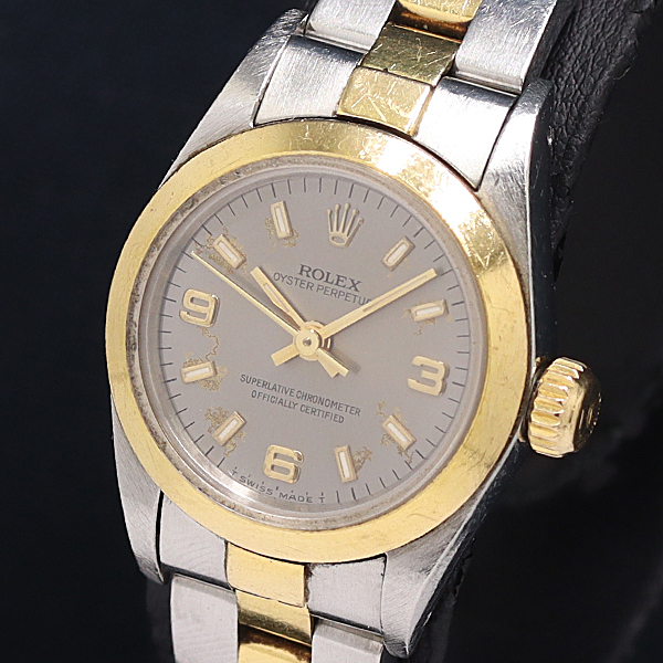 1円 ロレックス オイスターパーペチュアル 67183 V546983 AT/自動巻 SS/YG グレー文字盤 レディース腕時計 8178720 11DIT MST