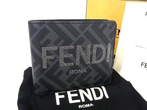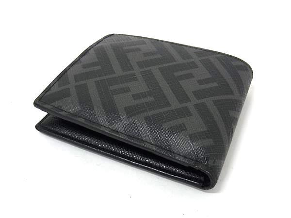 1円 FENDI フェンディ PVC 二つ折り 財布 ウォレット 札入れ 小銭入れ メンズ レディース グレー系×ブラック系 FN8160