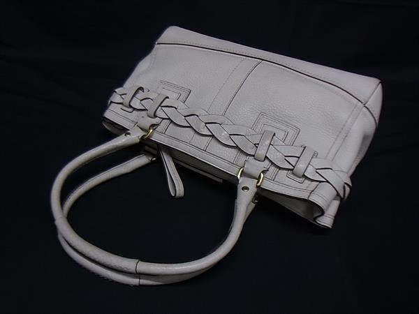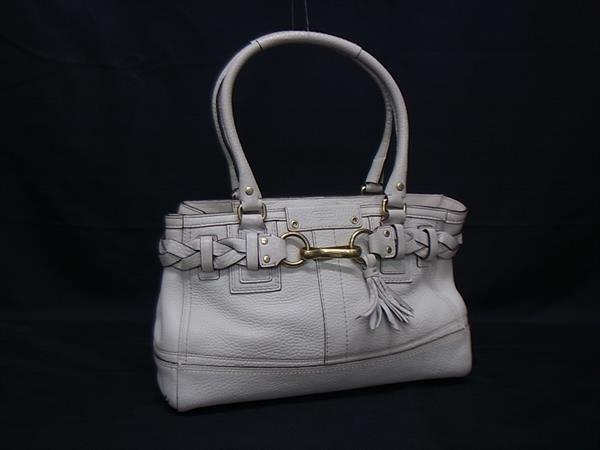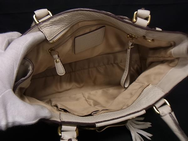 1円 COACH コーチ 10528 ハンプトンズ キャリーオール レザー タッセル ハンドバッグ ショルダー 肩掛け レディース アイボリー系 GB2681