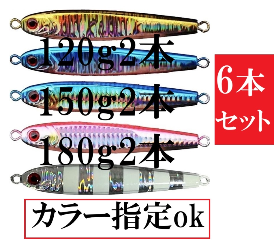 6本セット120g 150g 180g TGベイト風 tgジグ 高比重 タングステン混合 ジギングに 青物 船 オフショア ジギング メタルジグ ルアー