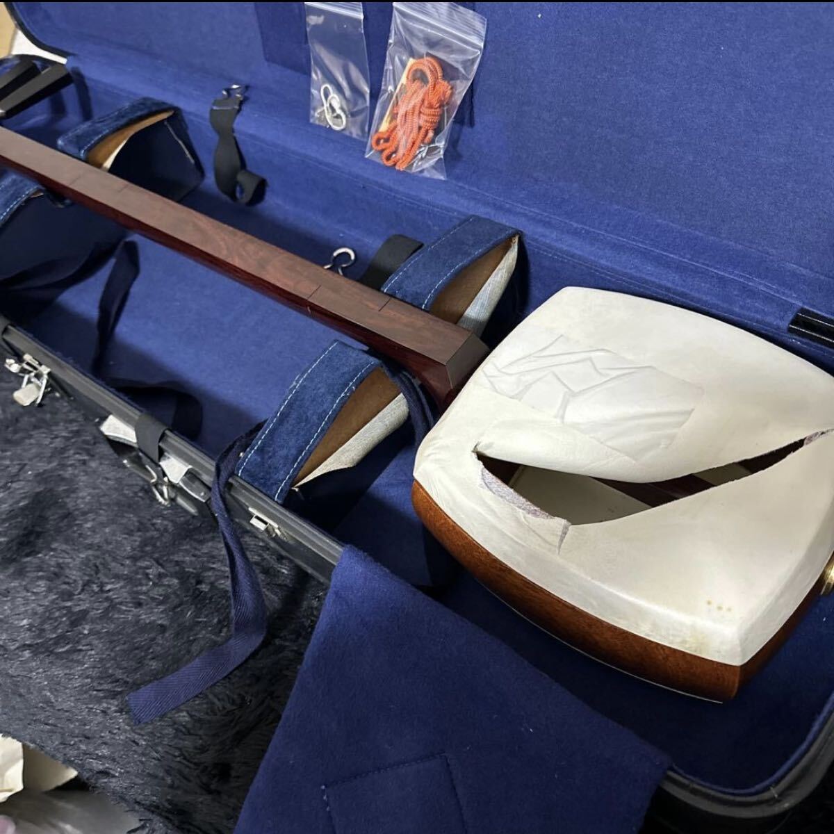 最高級 1円スタート 津軽三味線 太棹 和楽器 綾杉彫り ハードケース付属 雅楽 トチ 1円~ 民俗楽器 弦楽器