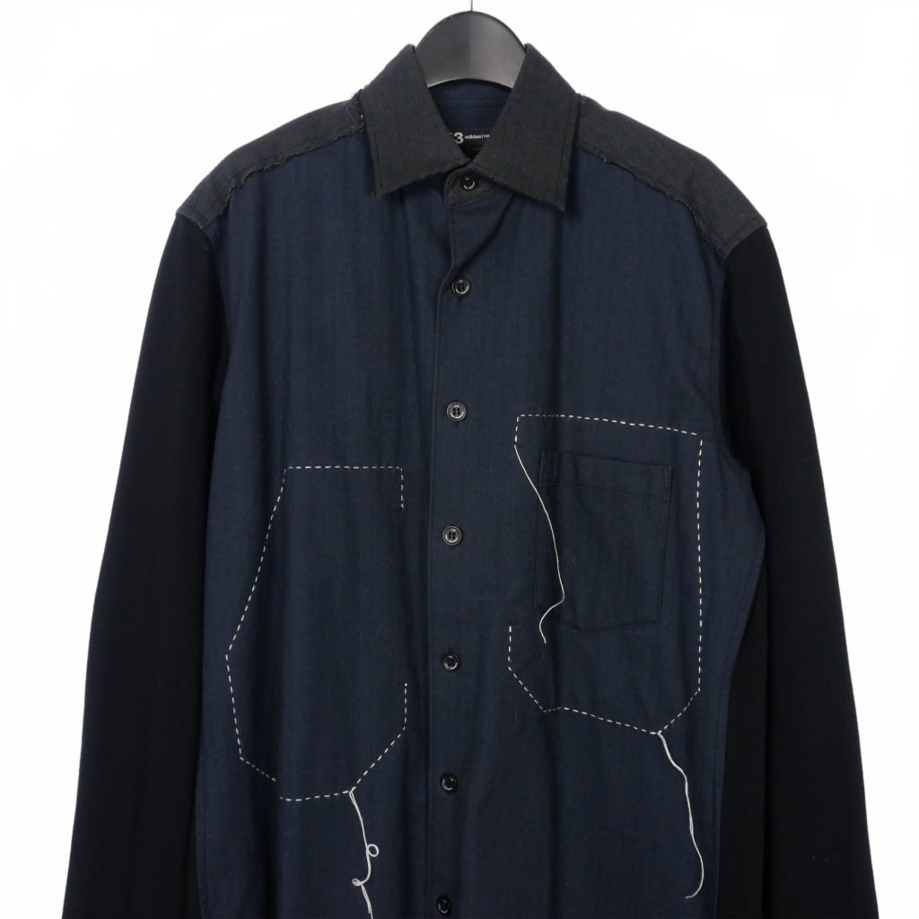 ワイスリー Y-3 ヨウジヤマモト 切替 ロングシャツ 長袖 ステッチ XS 黒 紺 ブラック ネイビー DP0567 メンズ