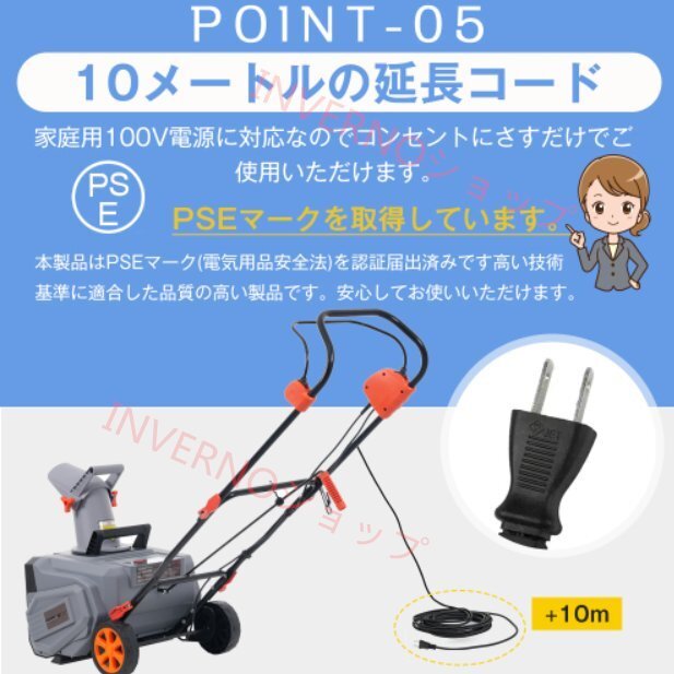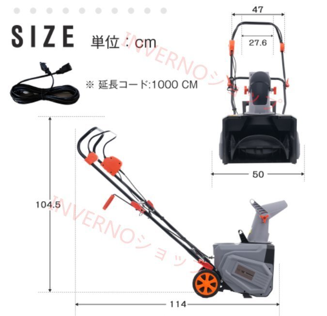 除雪機 大型 家庭用 軽量 除雪幅46cm 除雪高27cm 10M電源ケーブル グレー