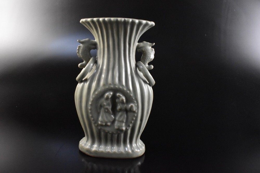 | 商品名 | 【雲】某コレクター買取品 中国古玩 青磁 人物彫刻耳付花瓶 古美術品(花器花入) K5606 |