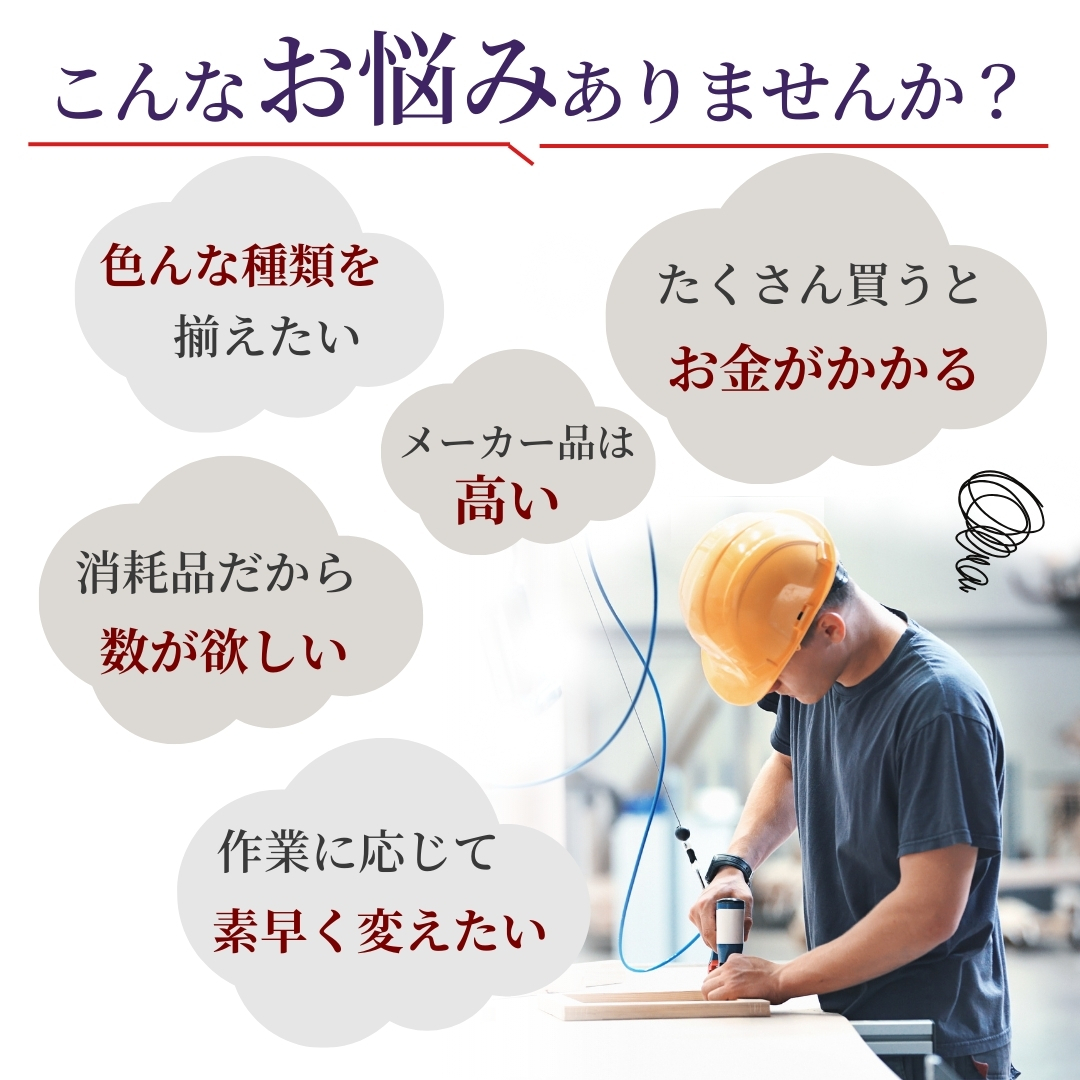 集じん対応で作業環境をクリーンに保ち、必要な番手がすぐ使えます。