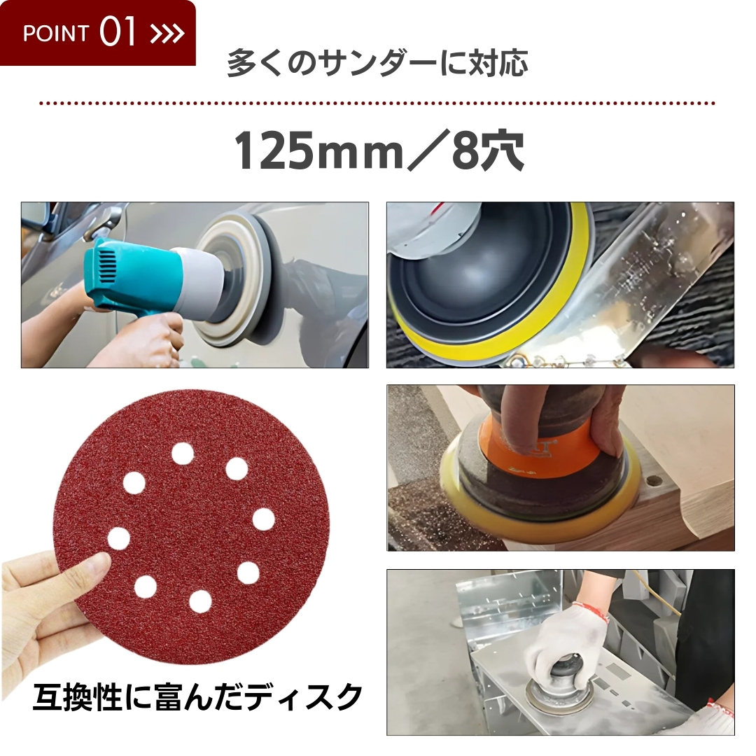 ● 多くのサンダーに対応 互換性に富んだディスク:一般的な125mm/8穴/面ファスナー式に適合します。