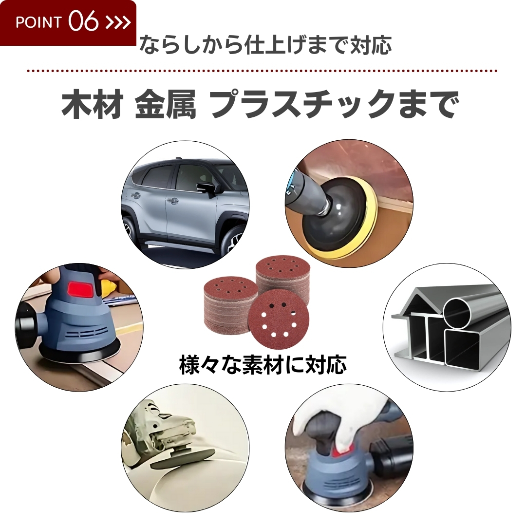 対応工具:125mm・8穴パターンのランダムサンダー各種