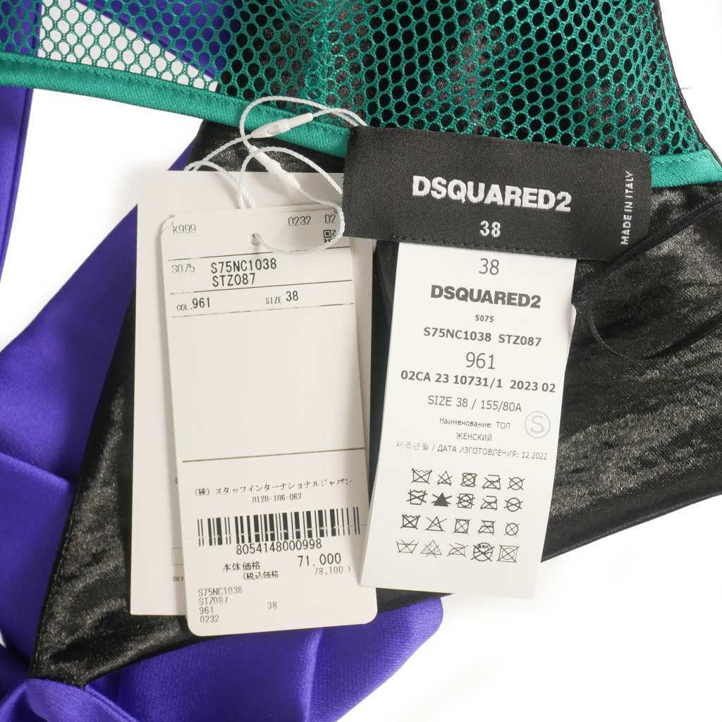 ディースクエアード DSQUARED2 23AW D2 80’s Top Vネック ショート丈 ノースリーブトップス 38 黒/緑/紫 S75NC1038 国内正規 レディース