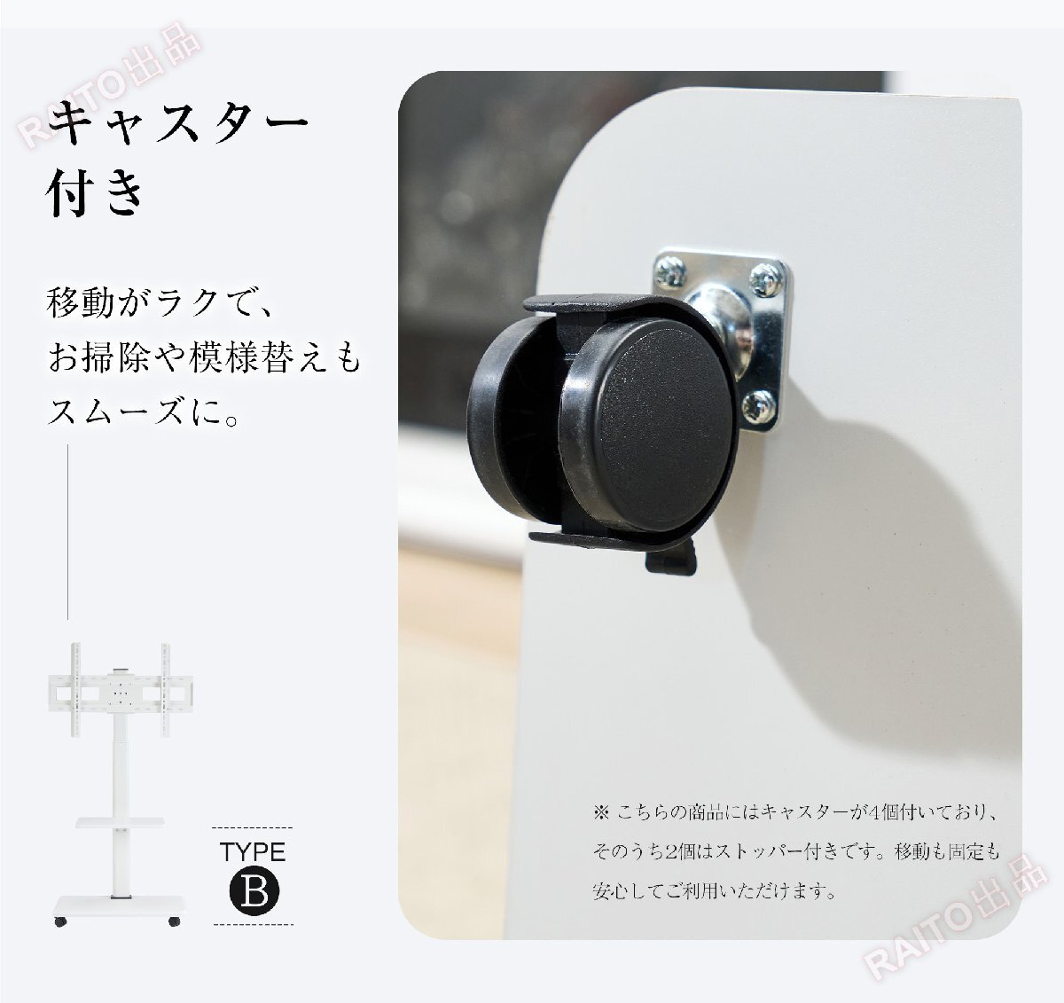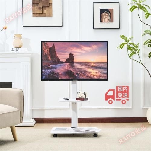 【翌日発送】テレビスタンド キャスター付き 壁寄せ ロータイプ 耐震 テレビ台 WALL 単品 棚板 セットテレビ 対応首振り角度調整 ホワイト