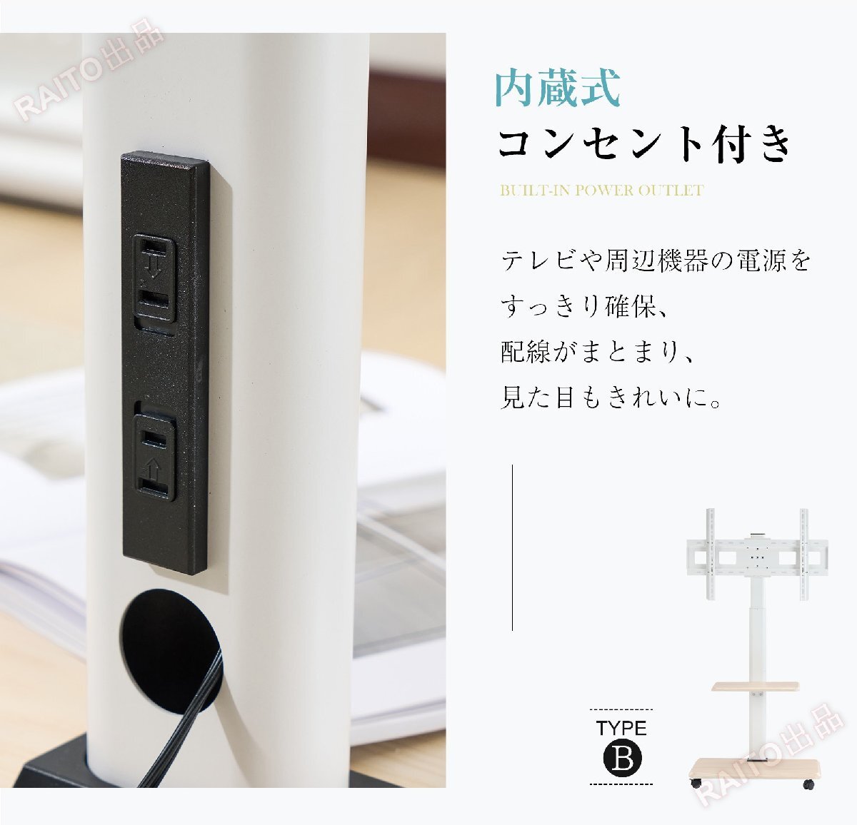 • 【内蔵式コンセント付 き】テレビや周辺機器の電源をすっきり確保、配線がまとまり、見た目もきれいに。【キャスター付き】移動がラクで、お掃除や模様替えもスムーズに。