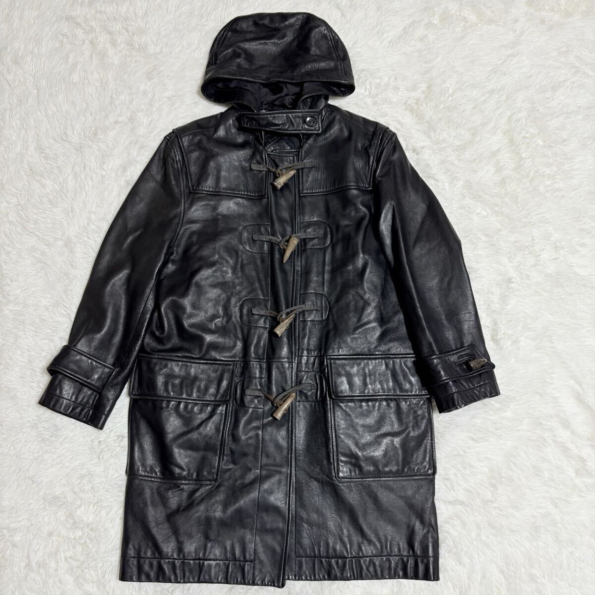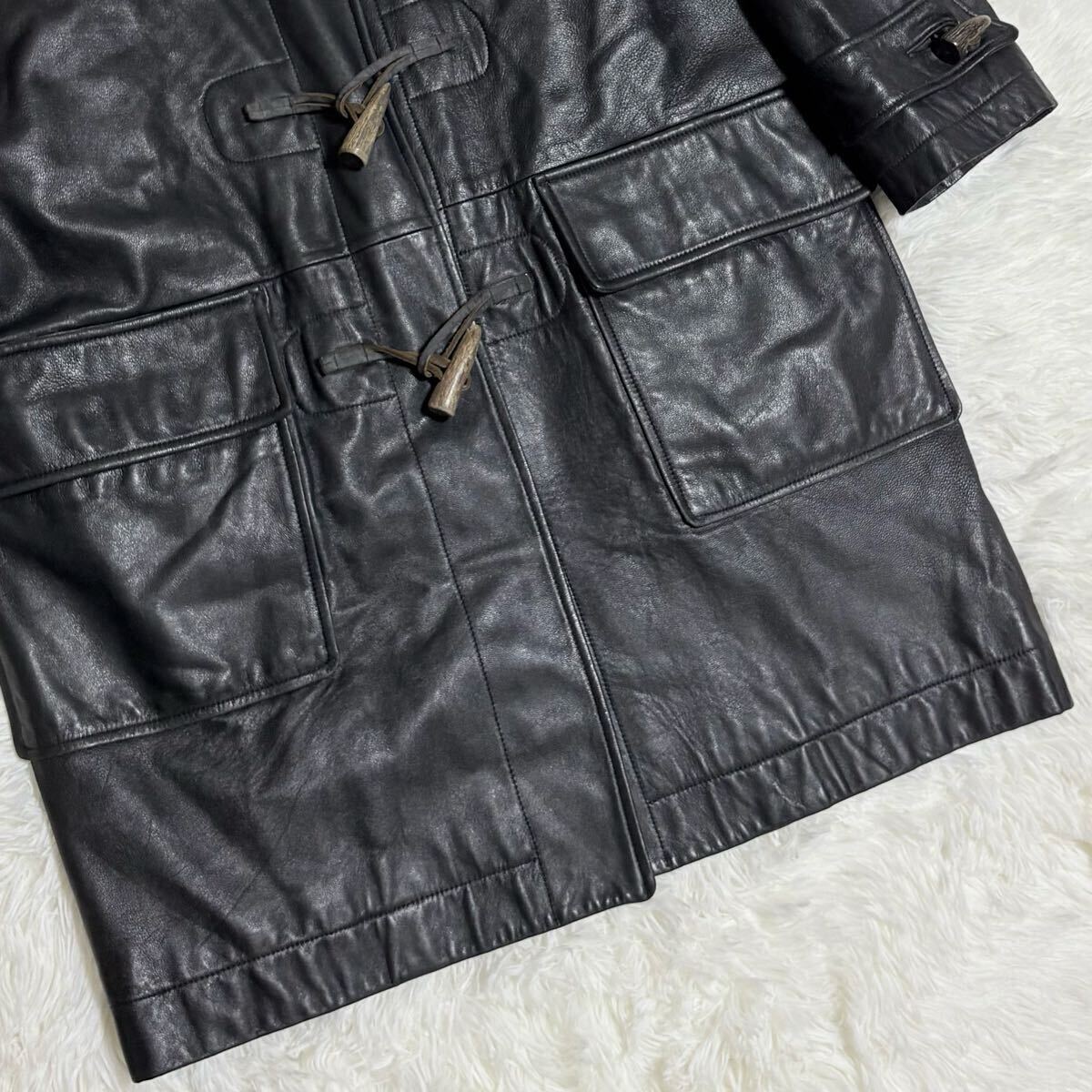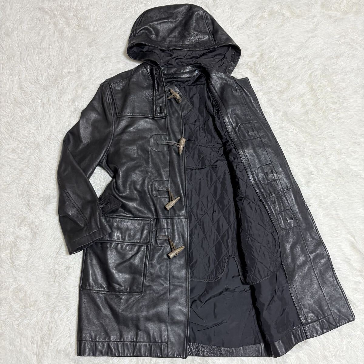 【大人の男の戦闘機】ライナー付 ROPE ラムレザー ダッフルコート レザーコート レザージャケット コート ロングコート 本革 羊革 黒 y2k